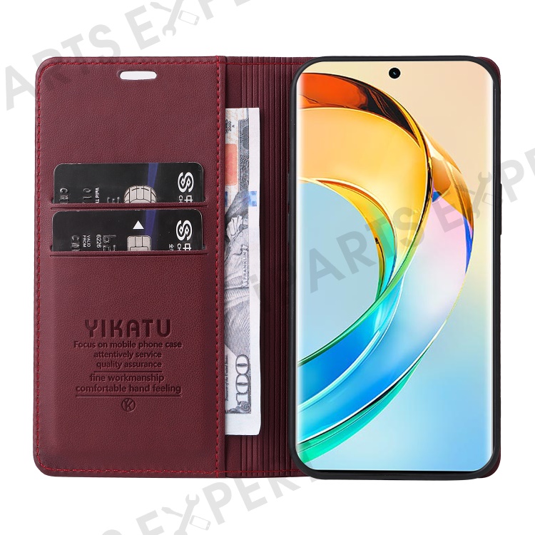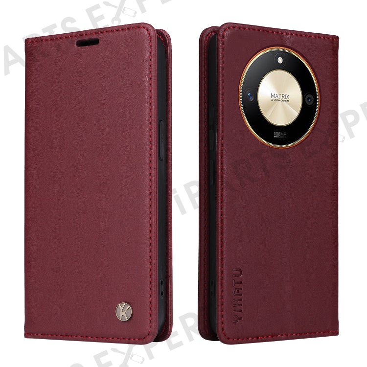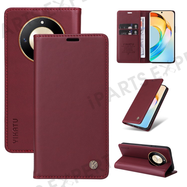 YIKATU YK-001 For Honor X50 5G / X9b 5G / Magic6 Lite 5G Case Leather Magnetic Closure Phone Cover - Wine Red