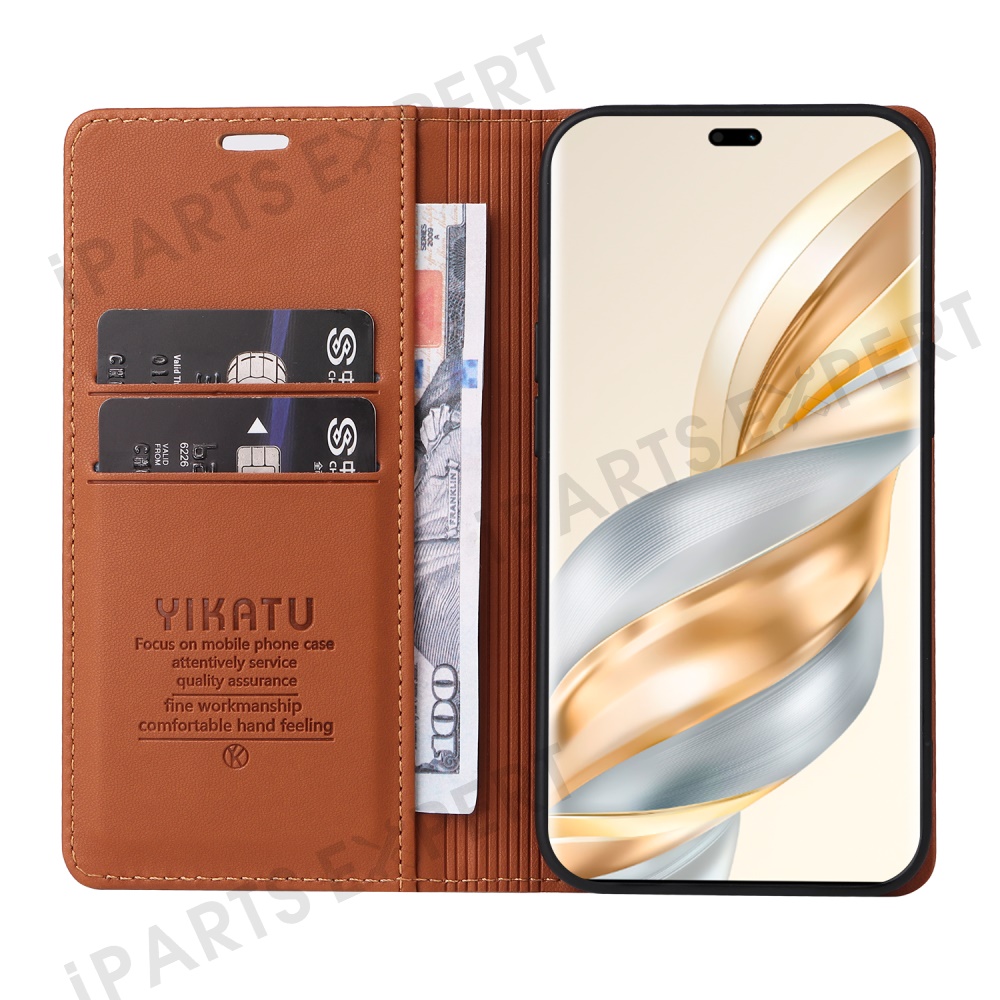 YIKATU YK-001 For Honor X60 Pro 5G / Magic7 Lite 5G / X9c 5G Wallet Case Card Slot Stand Leather Phone Cover - Brown