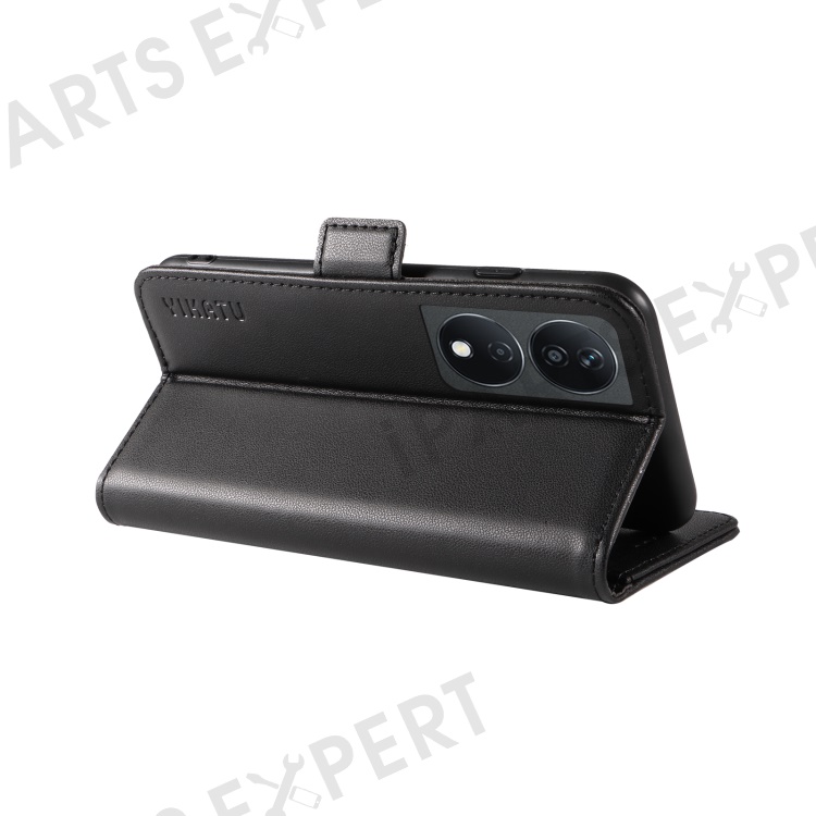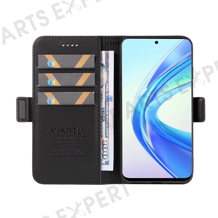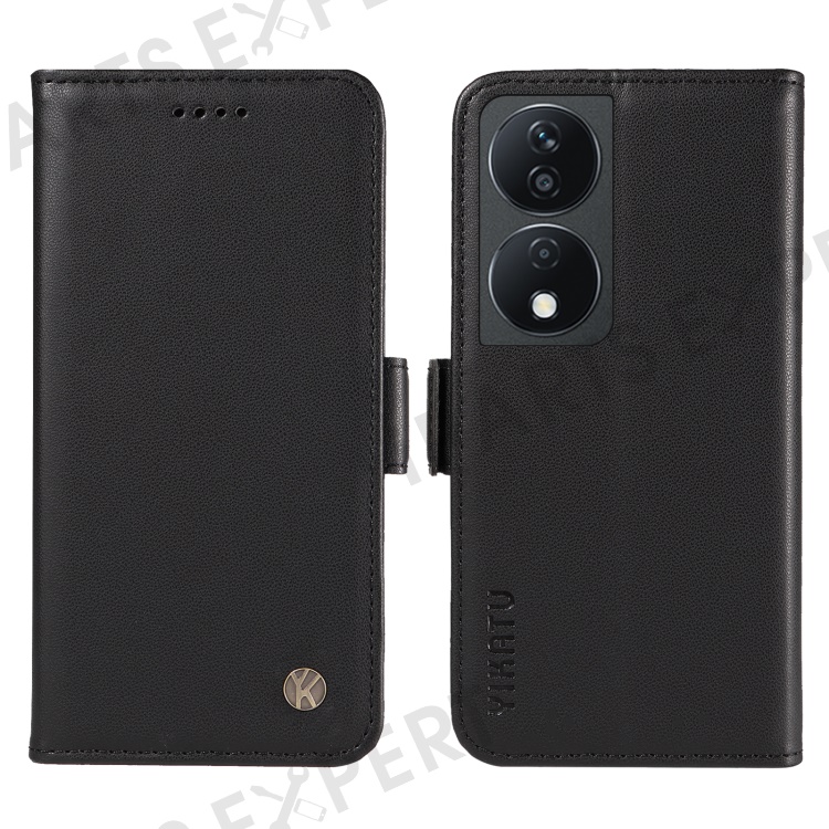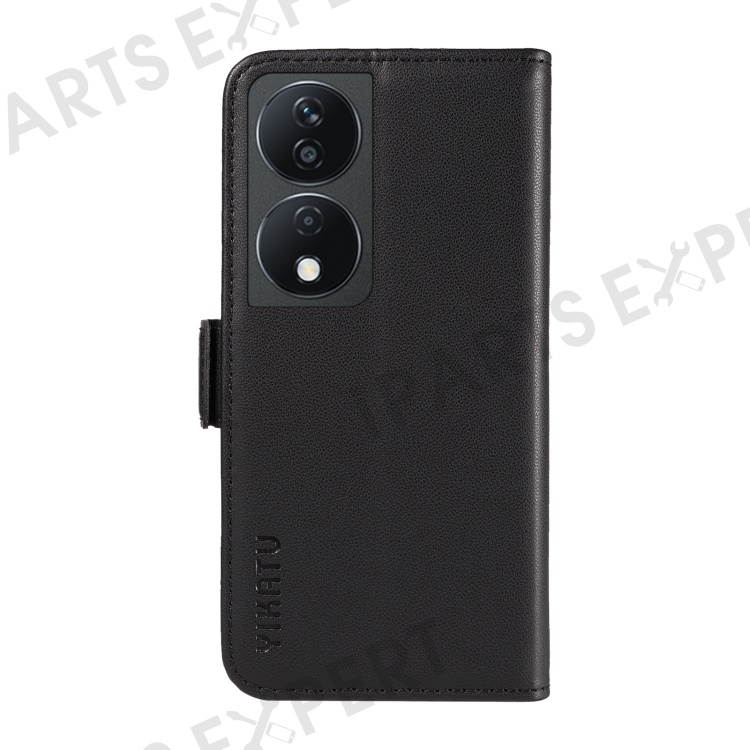 YIKATU YK-003 For Honor X7b 4G / 90 Smart Case Leather Side Magnetic Clasp Phone Stand Cover - Black