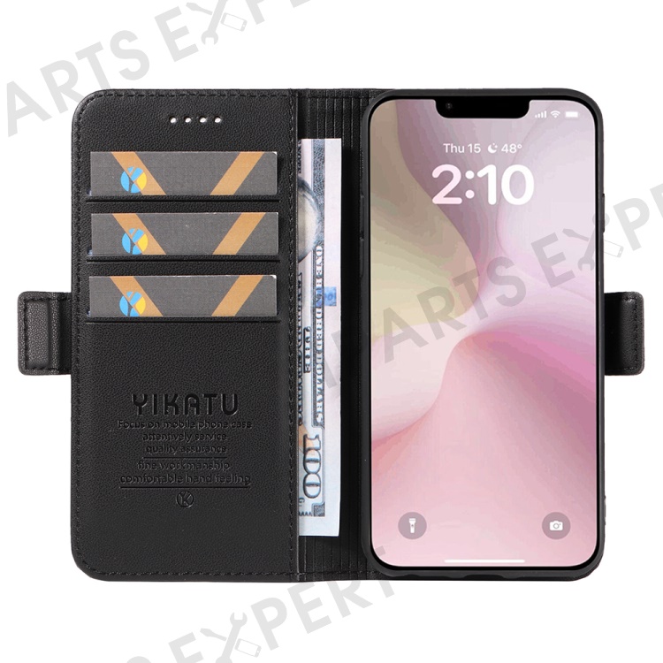 YIKATU YK-003 For iPhone 17e / 16e Case Leather Wallet Phone Cover Mobile Accessories - Black