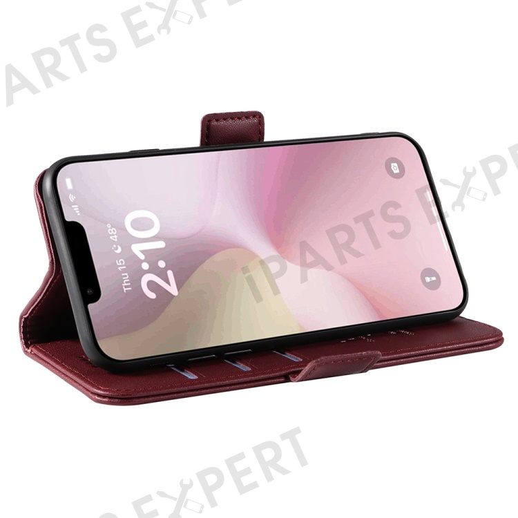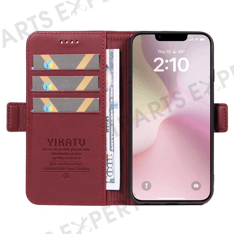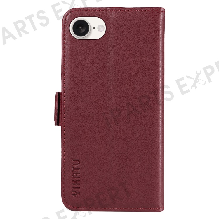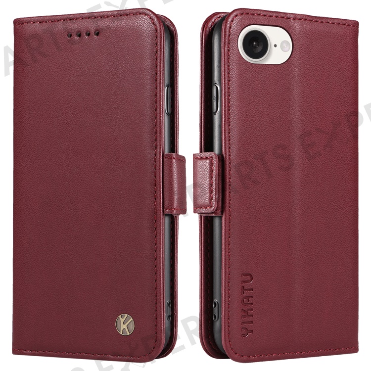 YIKATU YK-003 For iPhone 17e / 16e Case Leather Wallet Phone Cover Mobile Accessories - Wine Red