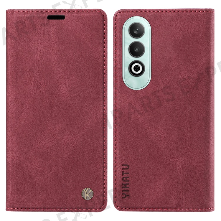 YIKATU YK-004 For OnePlus Nord CE4 5G Case PU Leather Card Slots Wallet Phone Cover - Wine Red