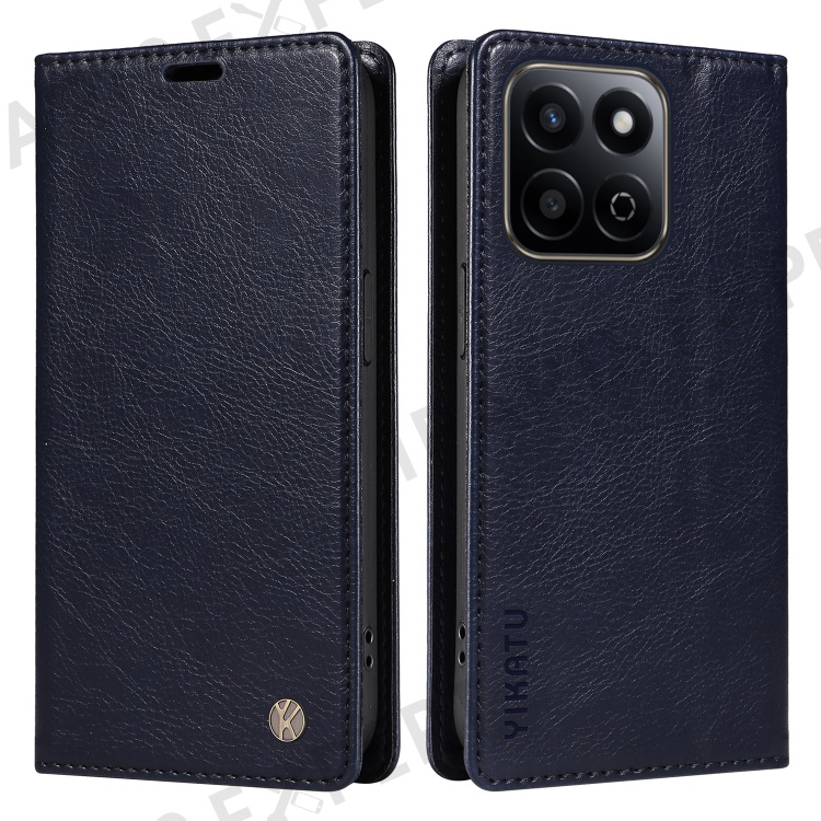 YIKATU YK-006 For Honor Play 60 Plus 5G / Play 9T / X7c 4G / 200 Smart 5G Case Magnetic Closure Leather Phone Cover Litchi Texture - Navy Blue