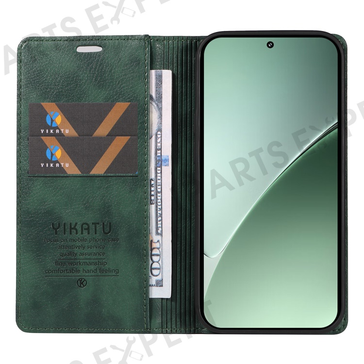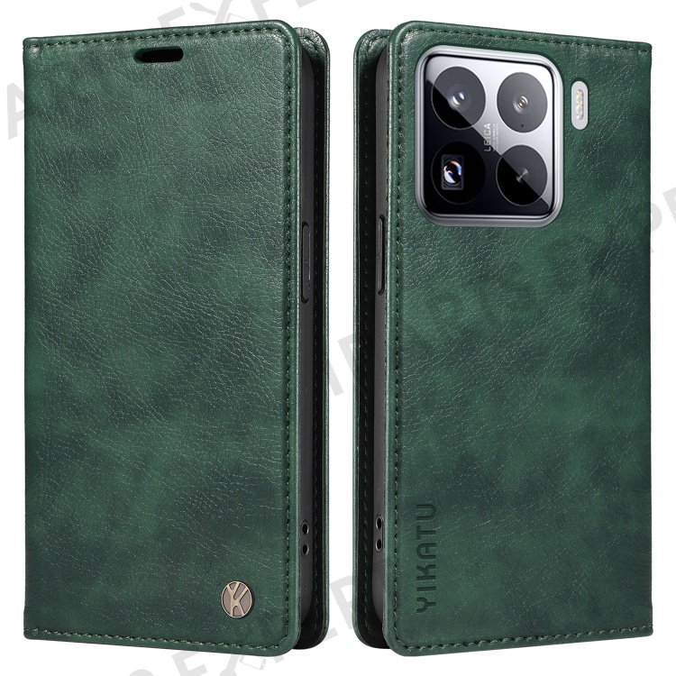 YIKATU YK-006 For Xiaomi 15 Pro Case Magnetic Closure Leather Phone Cover Litchi Texture - Green