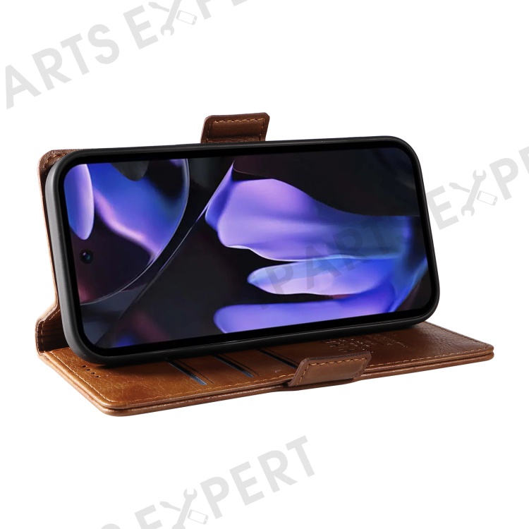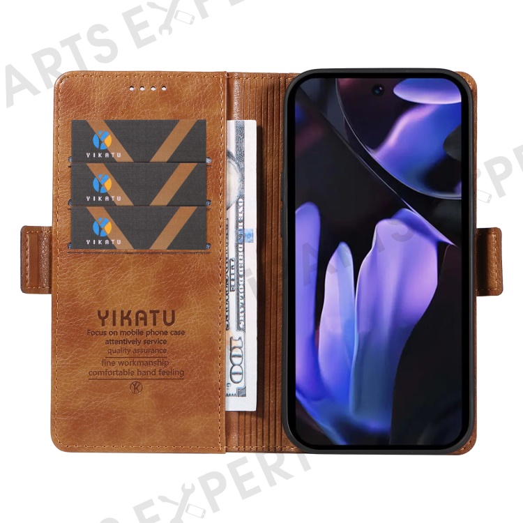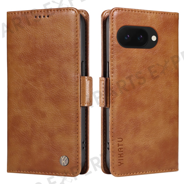 YIKATU YK-007 For Google Pixel 9a Case Side Buckle PU Leather Phone Cover Litchi Texture - Brown