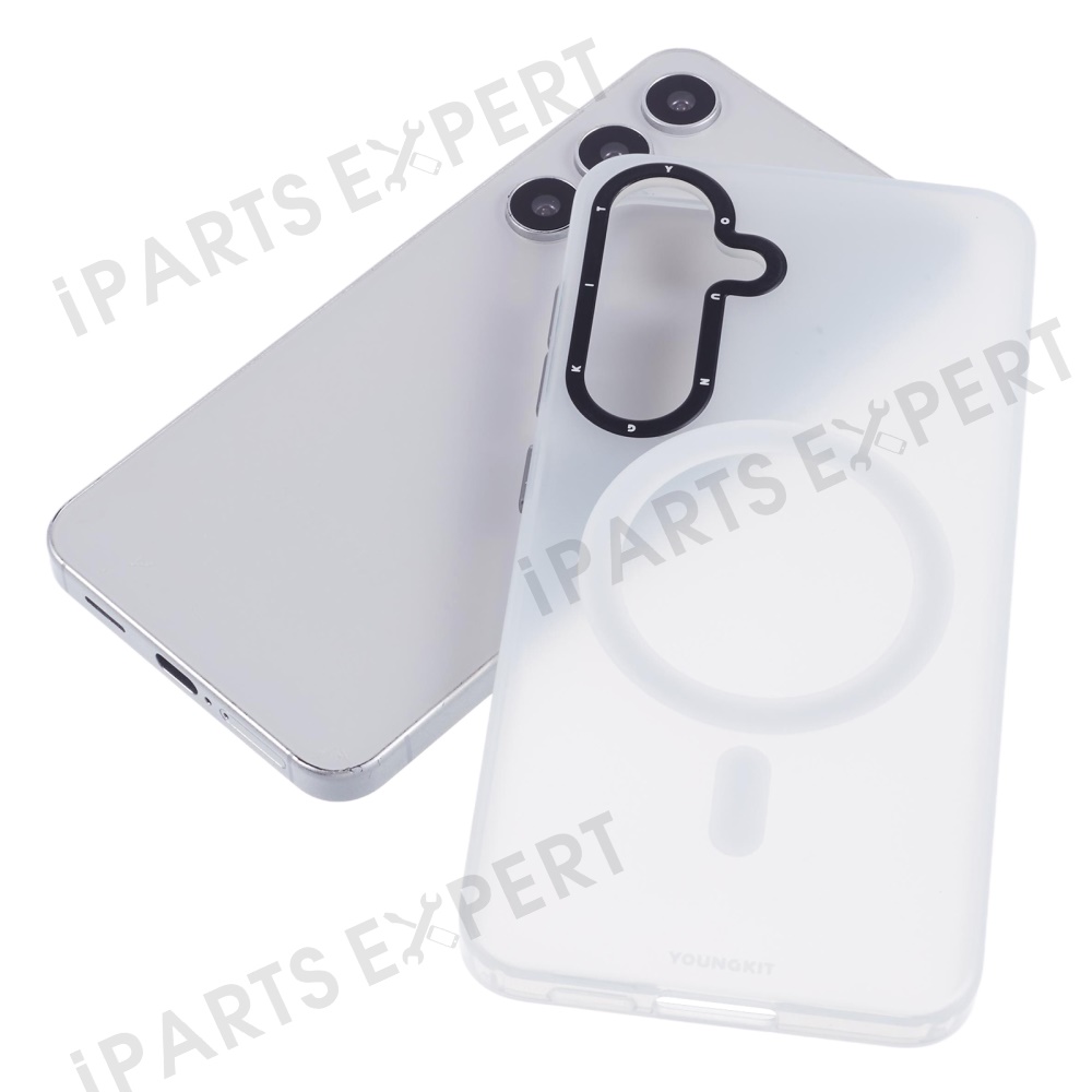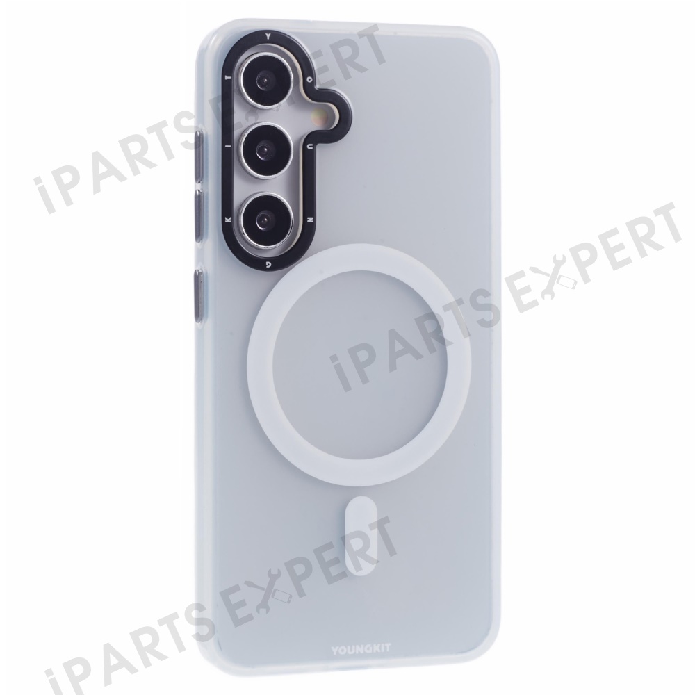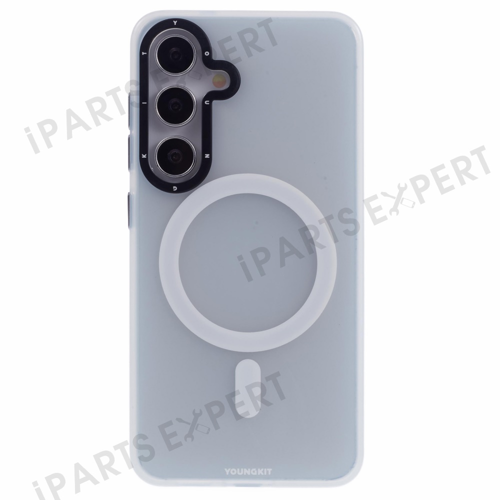 YOUNGKIT For Samsung Galaxy S25 Matte Magnetic Case PET TPU Shockproof Phone Cover - White