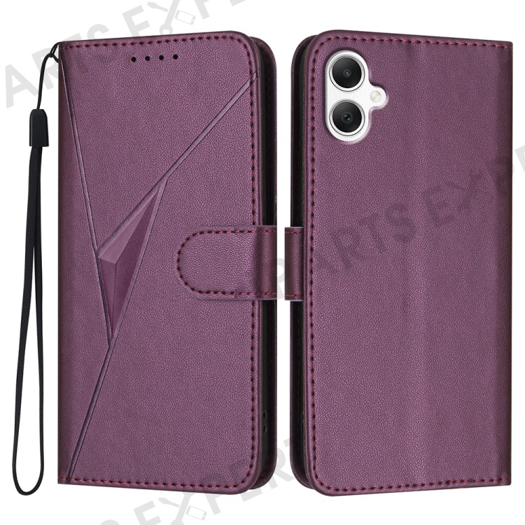YX0090 For Samsung Galaxy A06 4G Case Triangle Imprint Leather Phone Cover with Lanyard - Dark Purple