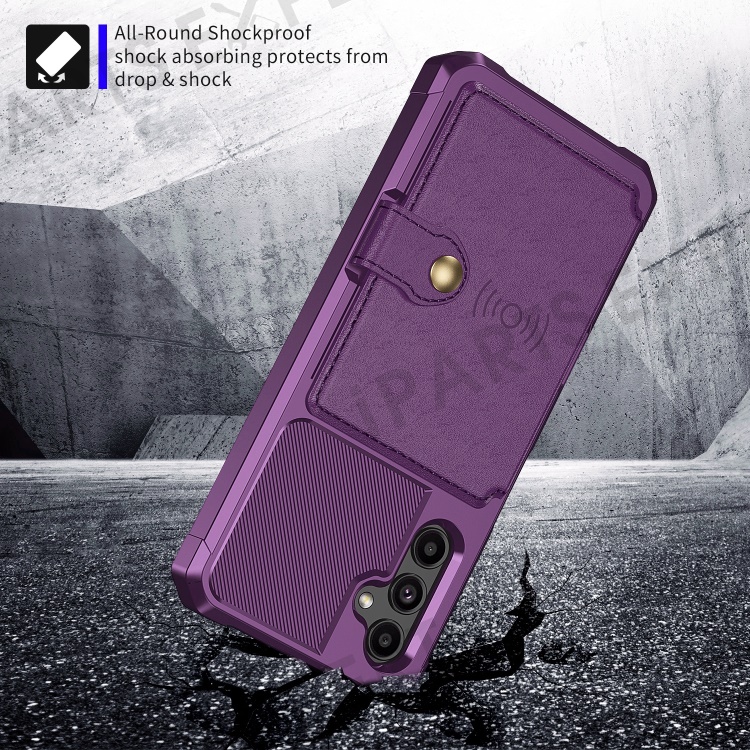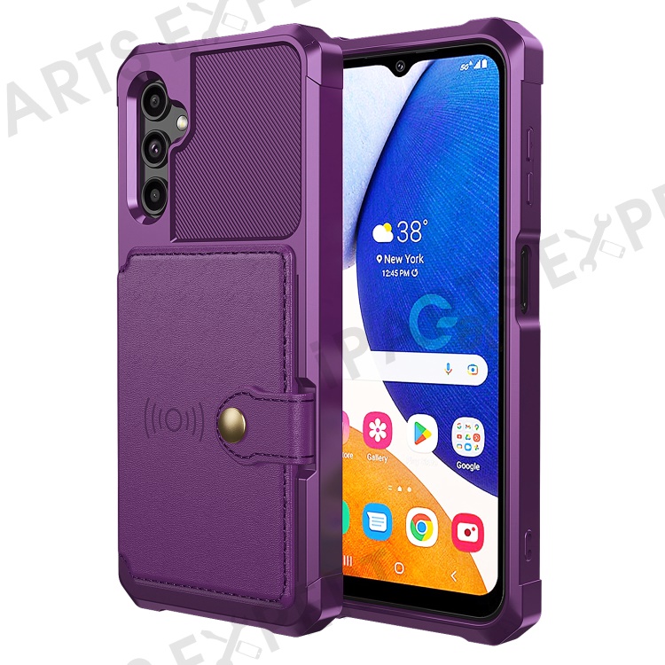 ZM03 For Samsung Galaxy A14 5G / A14 4G Case PU Leather Coated TPU Phone Wallet Cover with Magnetic Metal Sheet - Purple