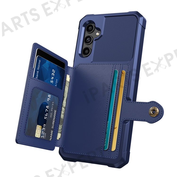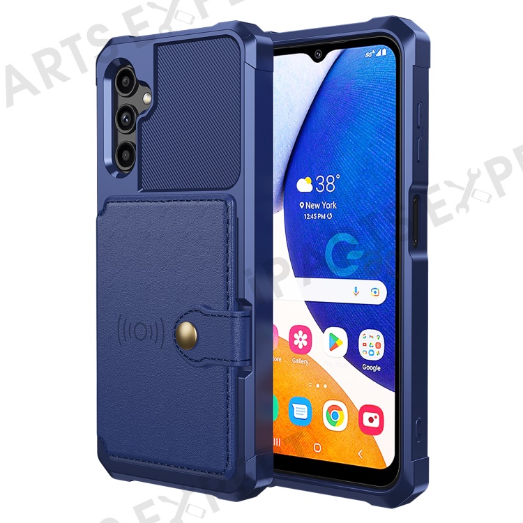 ZM03 for Samsung Galaxy A14 5G / A14 4G Fall Protection PU Leather Coated TPU Case Card Holder Kickstand Phone Cover with Magnetic Metal Sheet - Blue