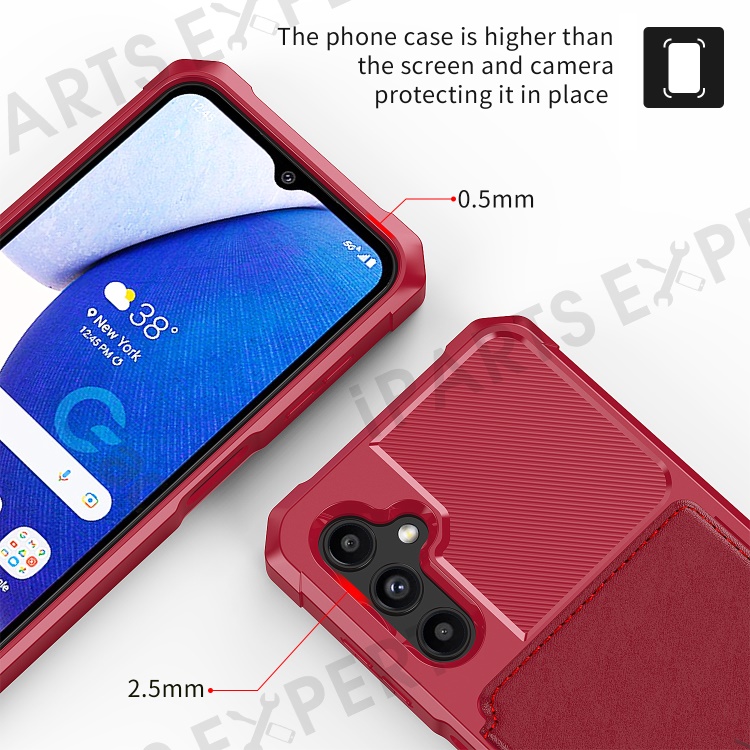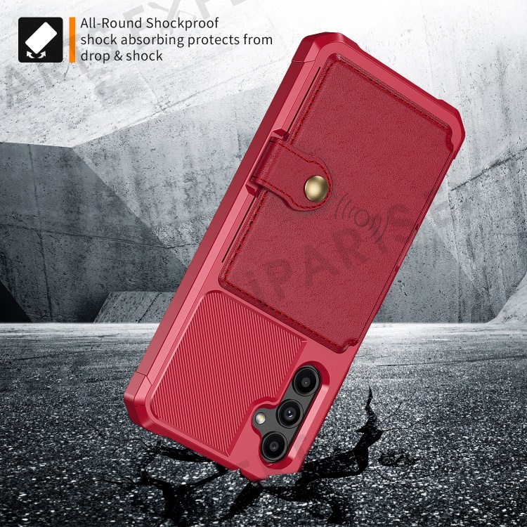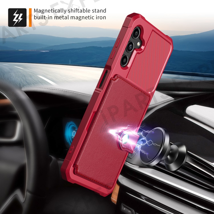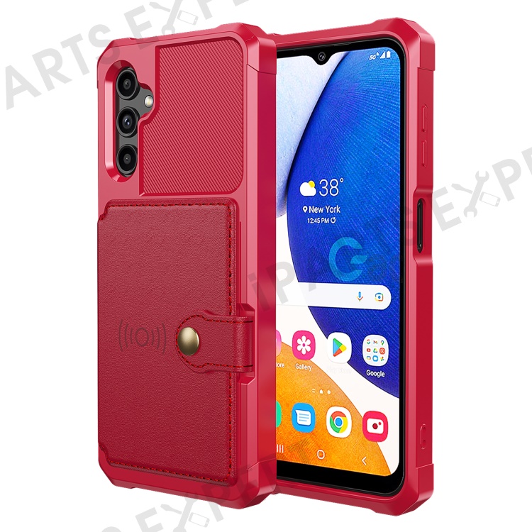 ZM03 for Samsung Galaxy A14 5G / A14 4G Fall Protection PU Leather Coated TPU Case Card Holder Kickstand Phone Cover with Magnetic Metal Sheet - Red