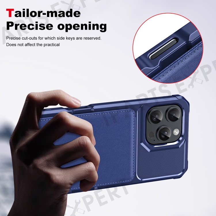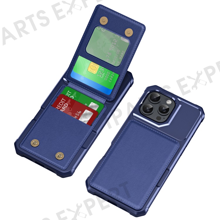 ZM11 For iPhone 16 Pro Max Case Card Slot Kickstand PU+TPU Phone Cover - Dark Blue