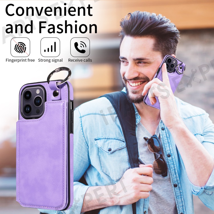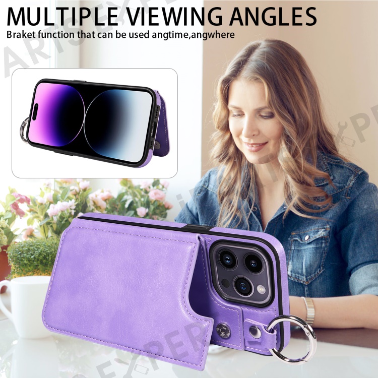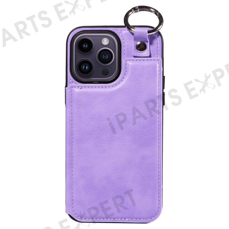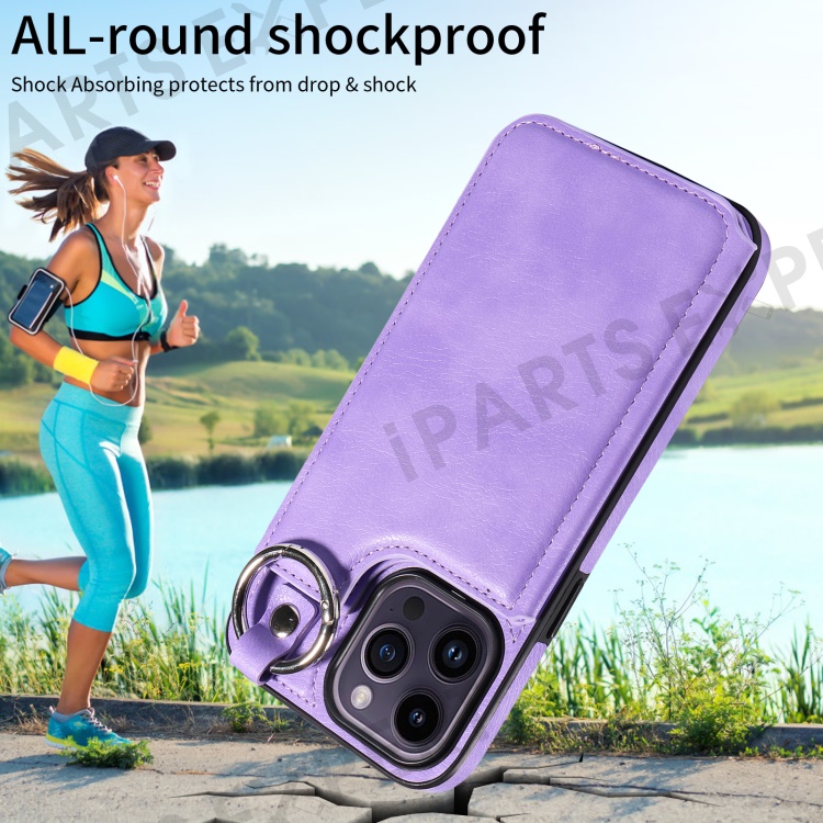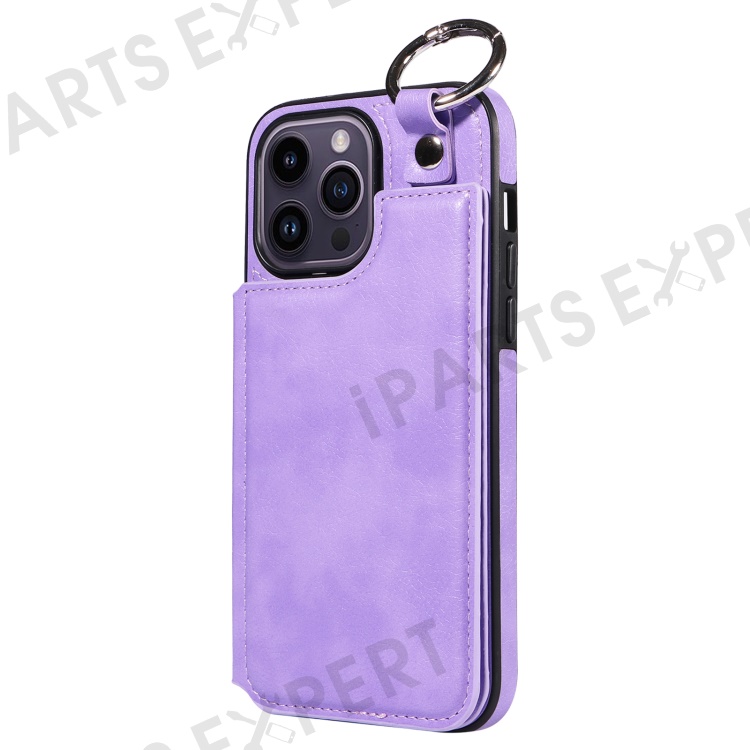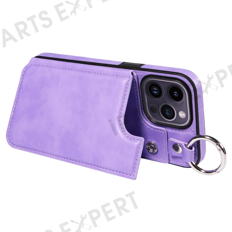 003 For iPhone 14 Pro Case Drop Proof PU Leather+TPU Phone Cover Kickstand Shell - Purple