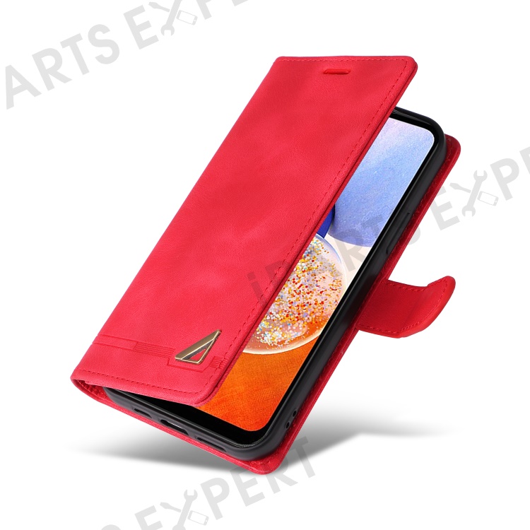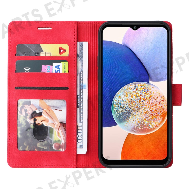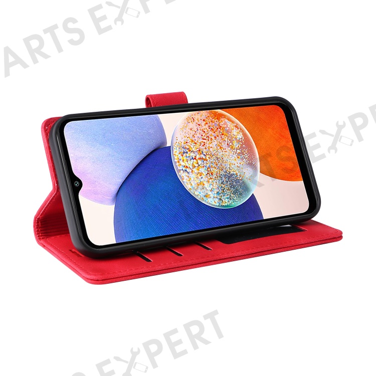 007 Series For Samsung Galaxy A14 5G / A14 4G Skin-touch Leather Wallet Phone Case Flip Stand Anti-drop Cover - Red