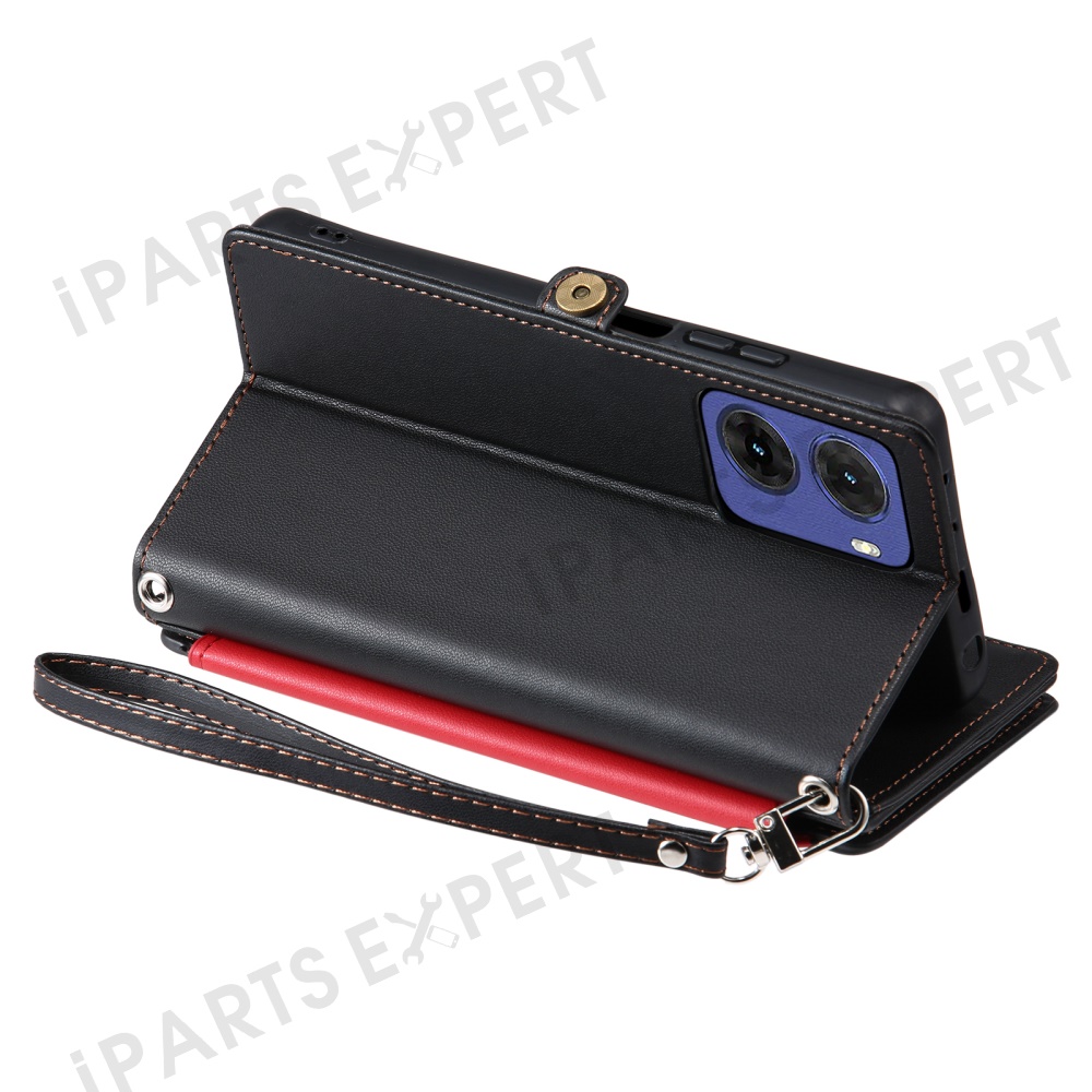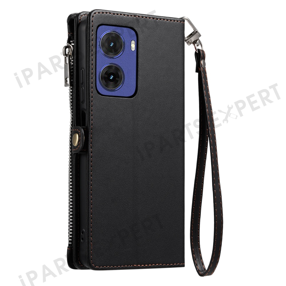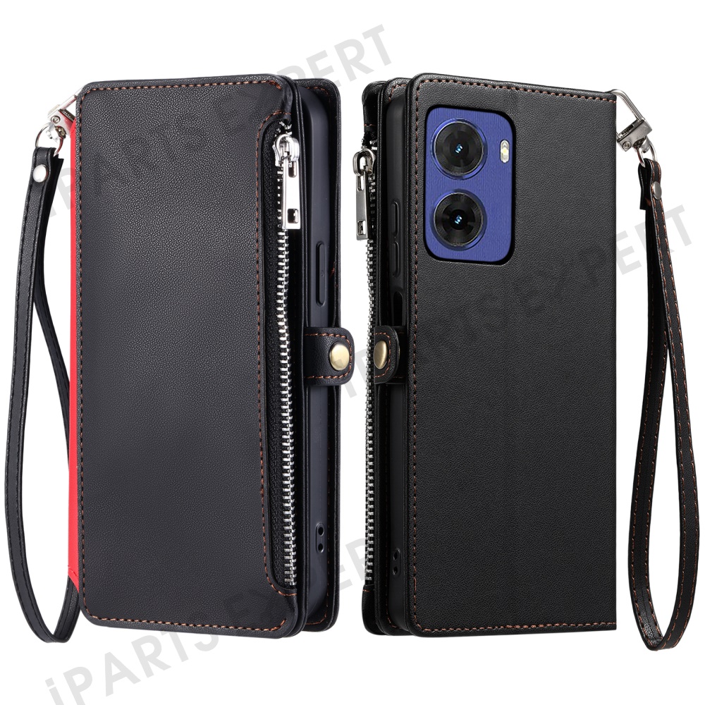 015 Style For Motorola Moto G05 4G Case TPU+PU Leather Wallet Phone Cover with Straps - Black