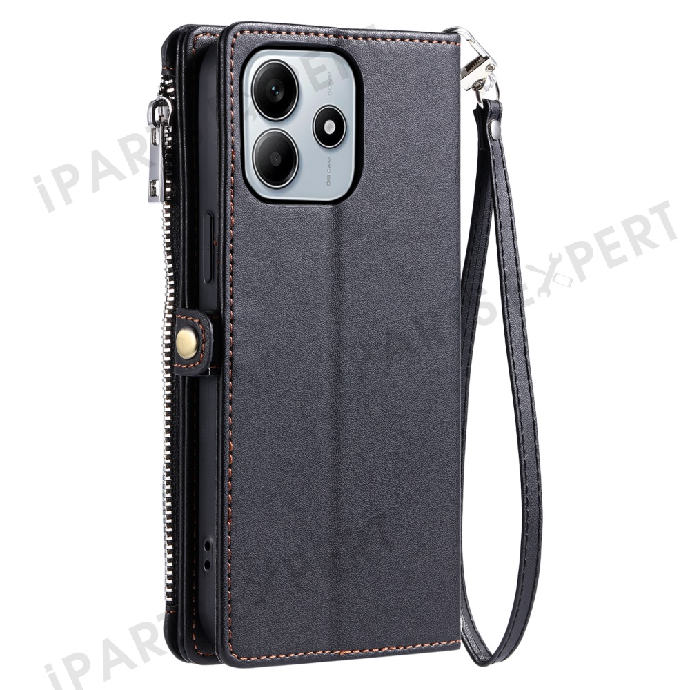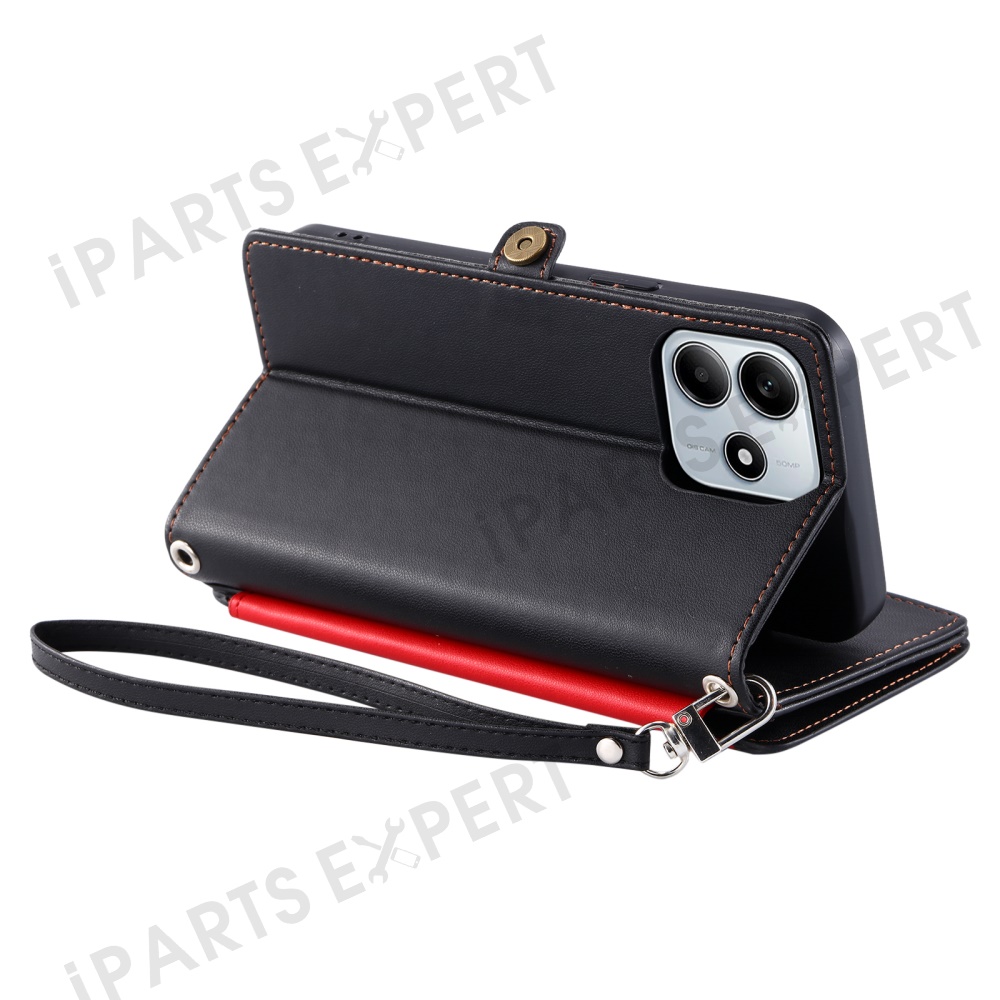 015 Style For Xiaomi Redmi Note 14 5G Case TPU+PU Leather Wallet Phone Cover with Straps - Black