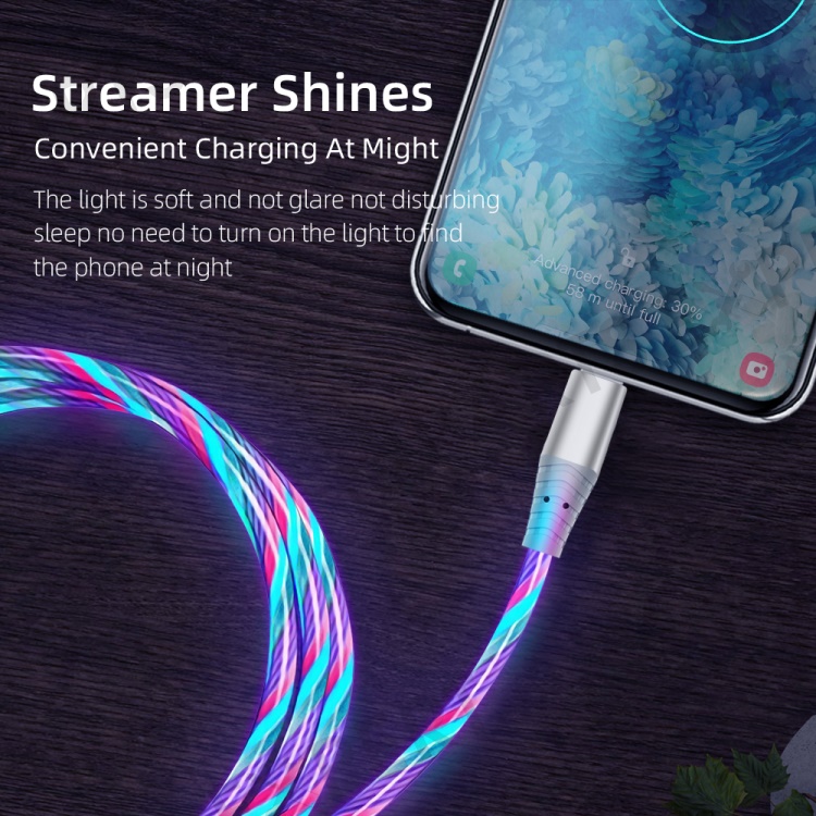 1m Glowing 3A Fast Charging Type-C Cable High-Speed Flowing Streamer Light LED Data Transfer USB Cable - Multi-color