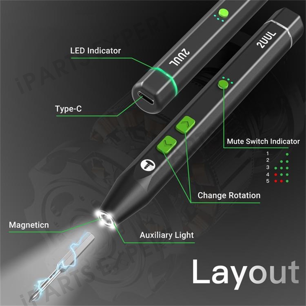 2UUL Twist Plus Electric Screwdriver Set High Speed 400 RPM Torque Protection For Phone Repair with LED Light - Black