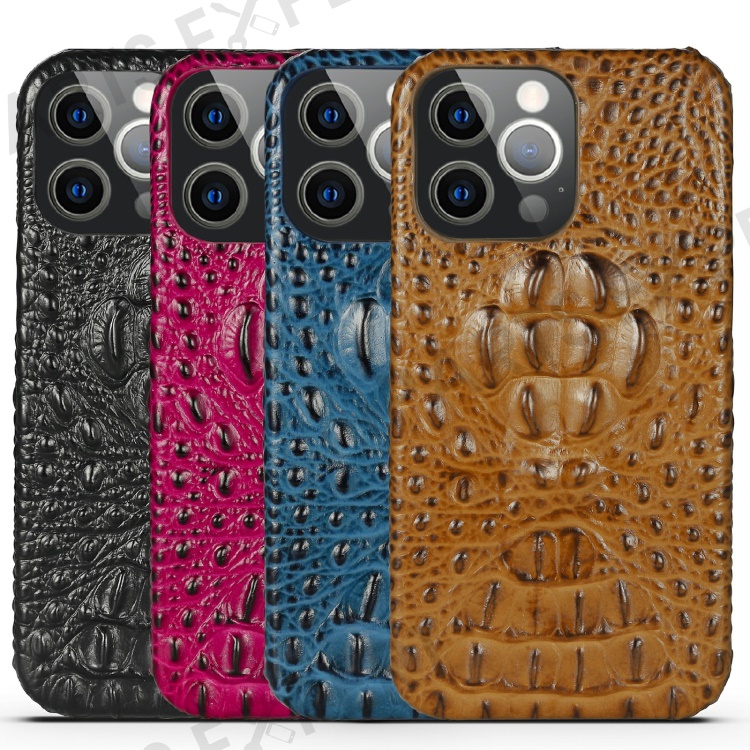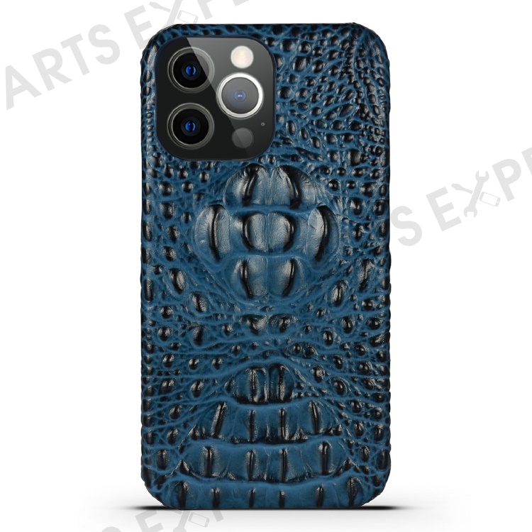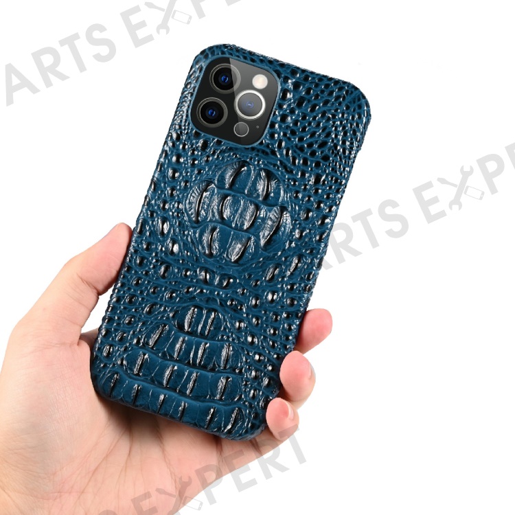 3D Crocodile Head Genuine Leather Coated PC Anti-Scratch Protective Back Case for iPhone 13 Pro Max 6.7 inch - Blue