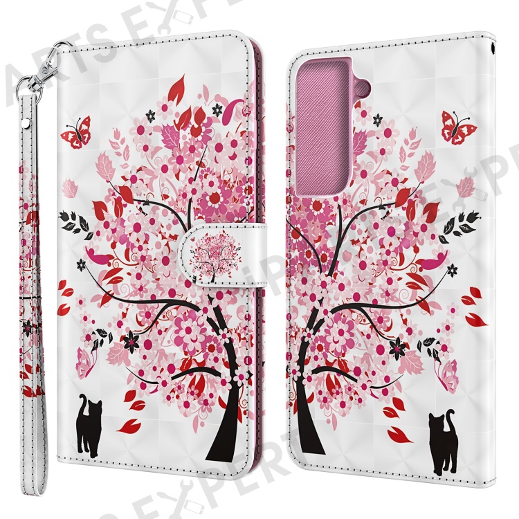 3D Pattern Printing Premium PU Leather Folio Flip Stand Wallet Phone Case with Wrist Strap for Samsung Galaxy S22 5G - Wish Tree