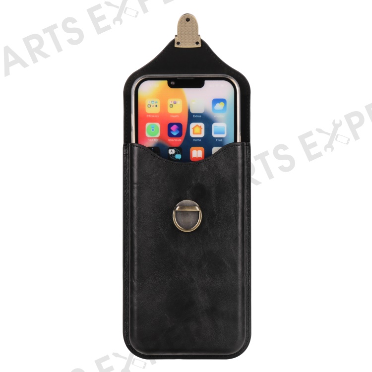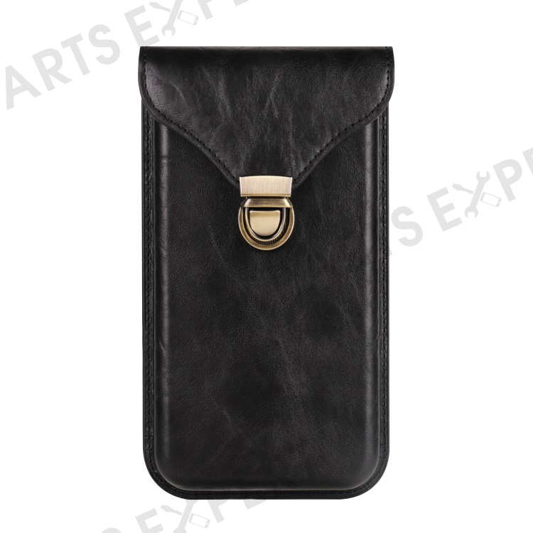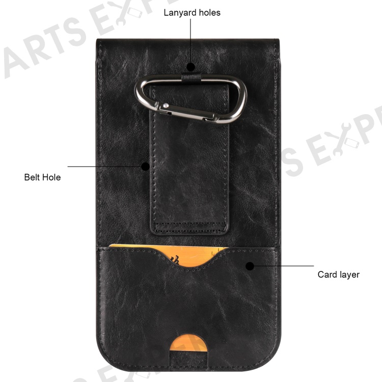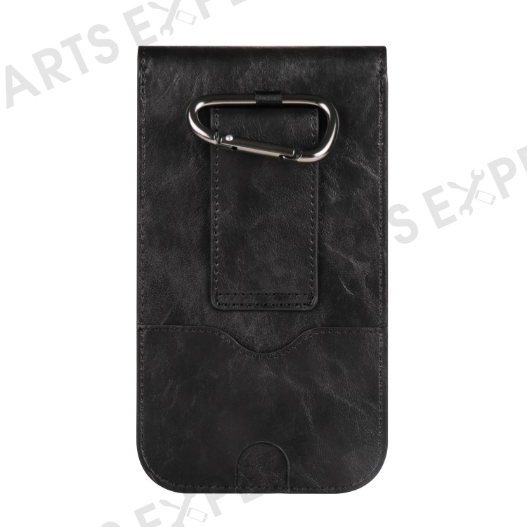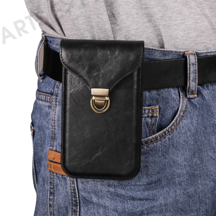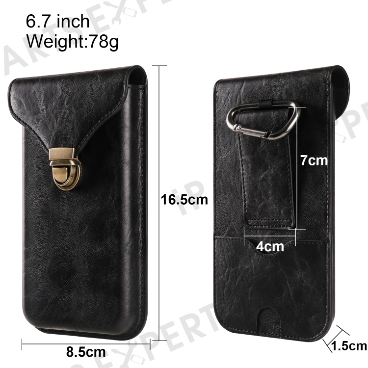 6.7-inch Universal Phone Case Card Holder PU Leather Waist Belt Holster Vertical Phone Pouch - Black