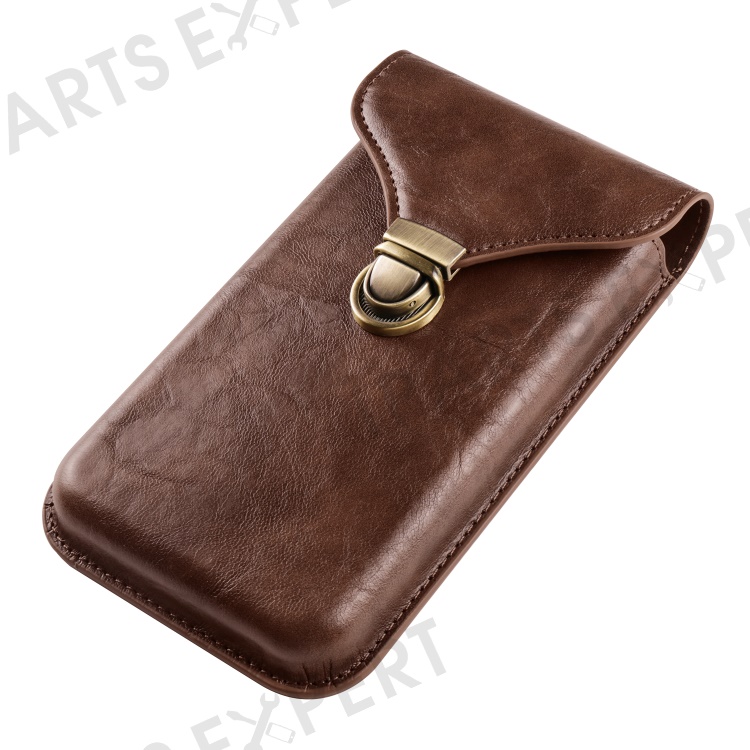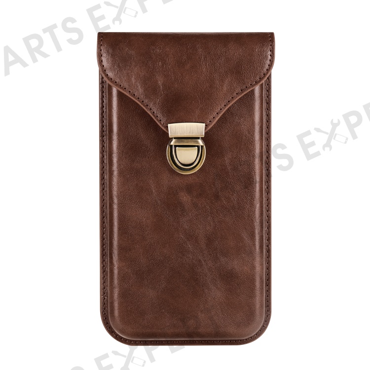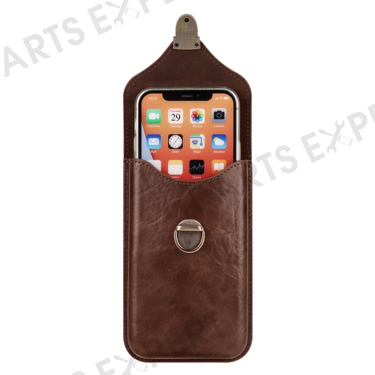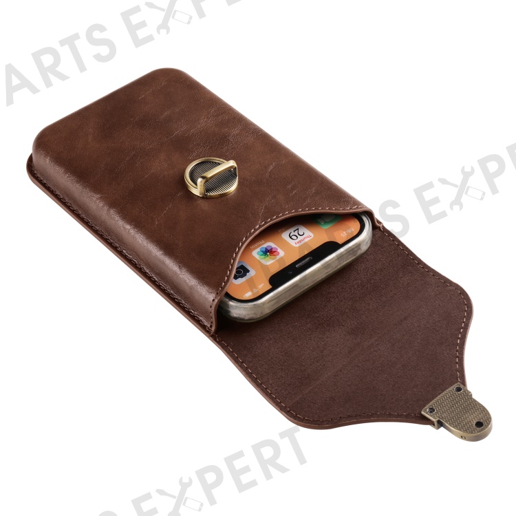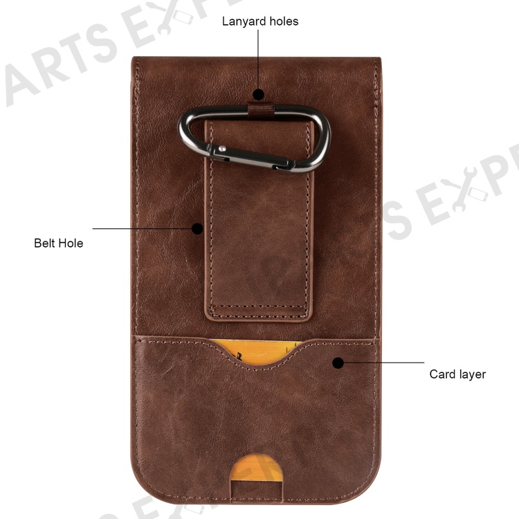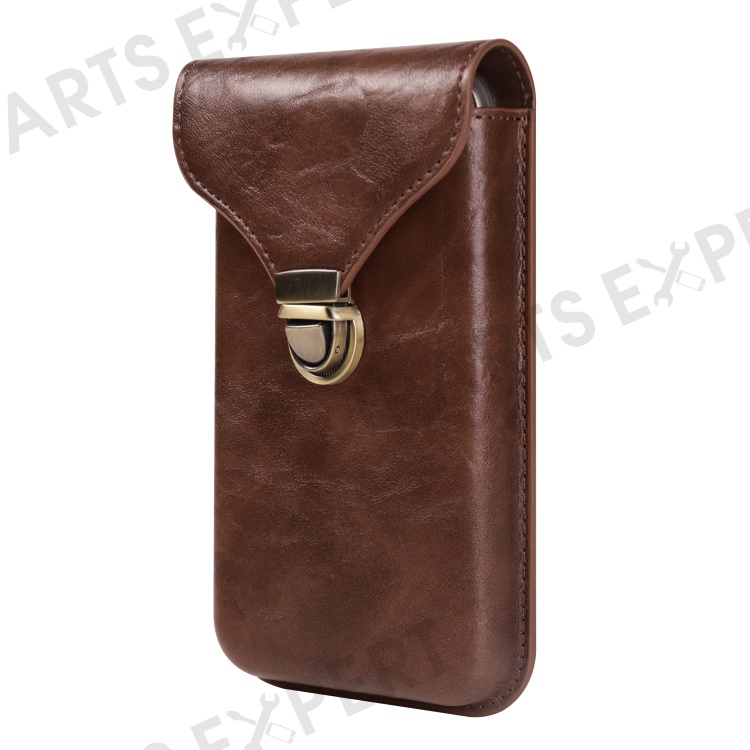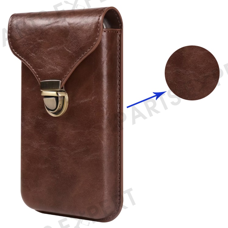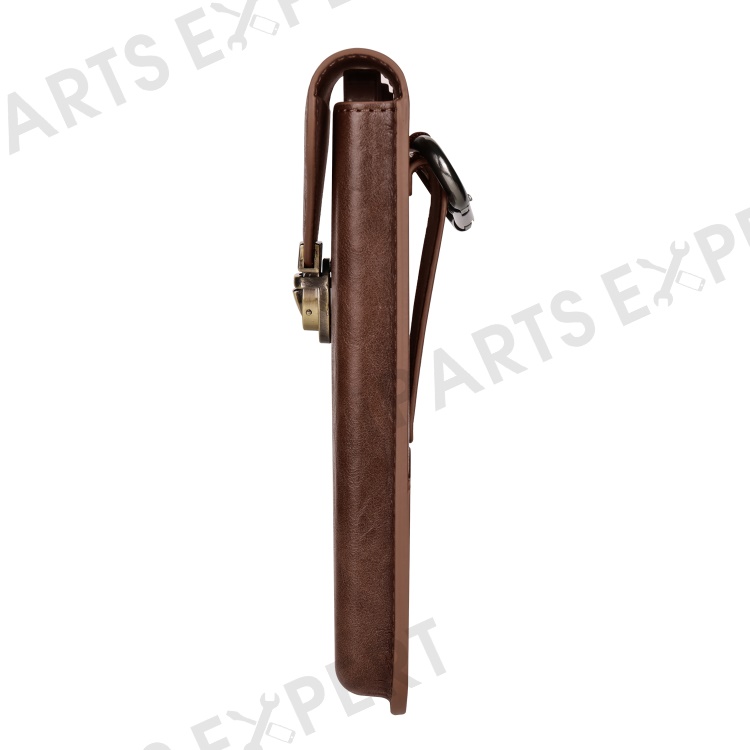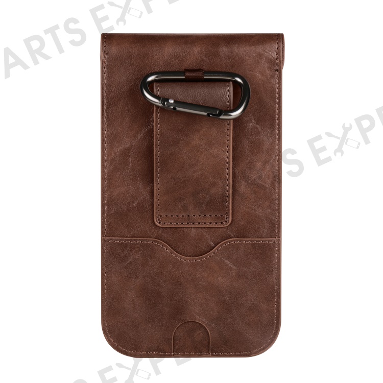 6.7-inch Universal Phone Case Card Holder PU Leather Waist Belt Holster Vertical Phone Pouch - Brown