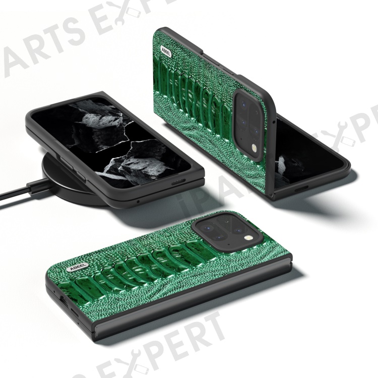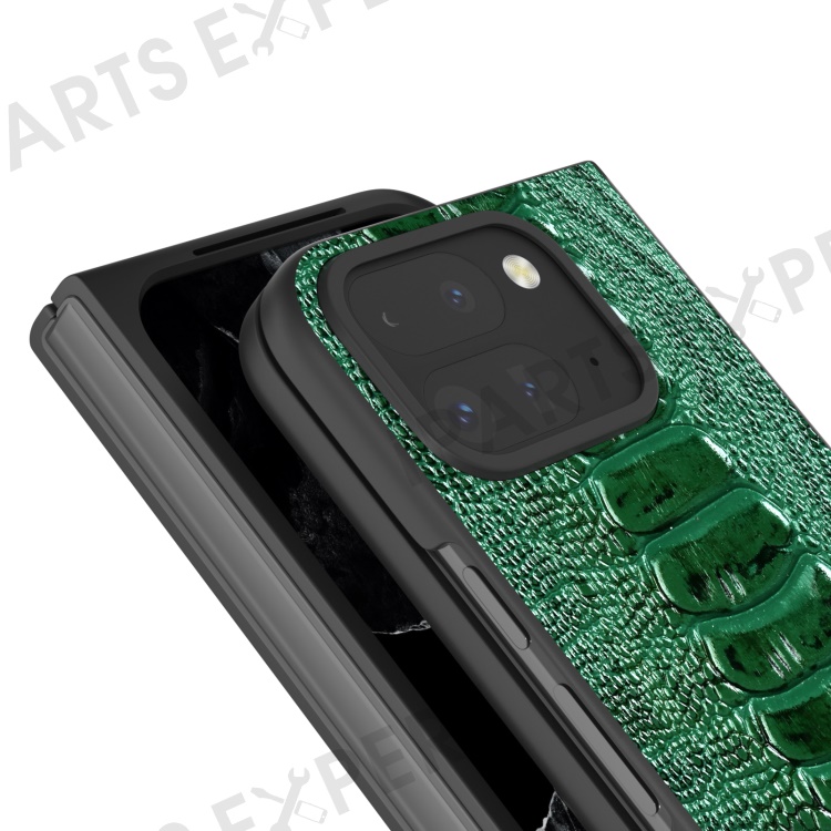ABEEL For Google Pixel 9 Pro Fold 5G Case Crocodile Texture Genuine Cow Leather+PC Phone Cover - Green