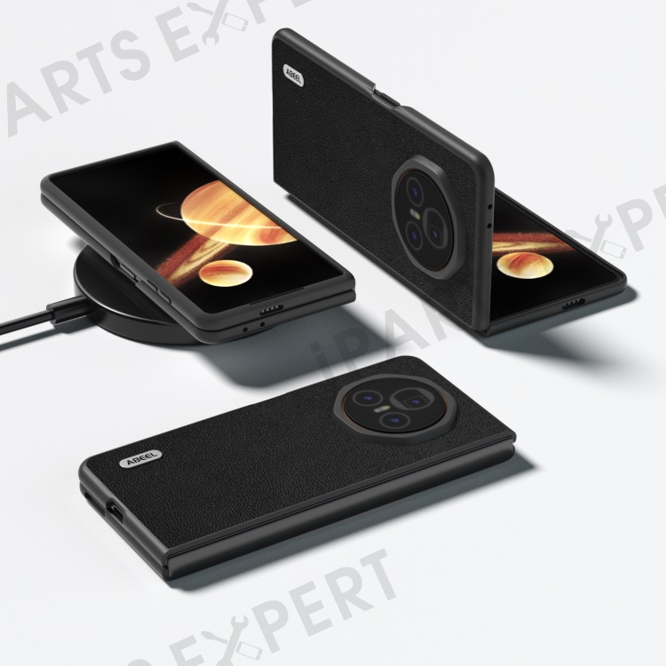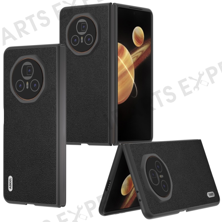 ABEEL For Honor Magic V3 5G Case Genuine Cow Leather Hard PC Folding Phone Cover - Black