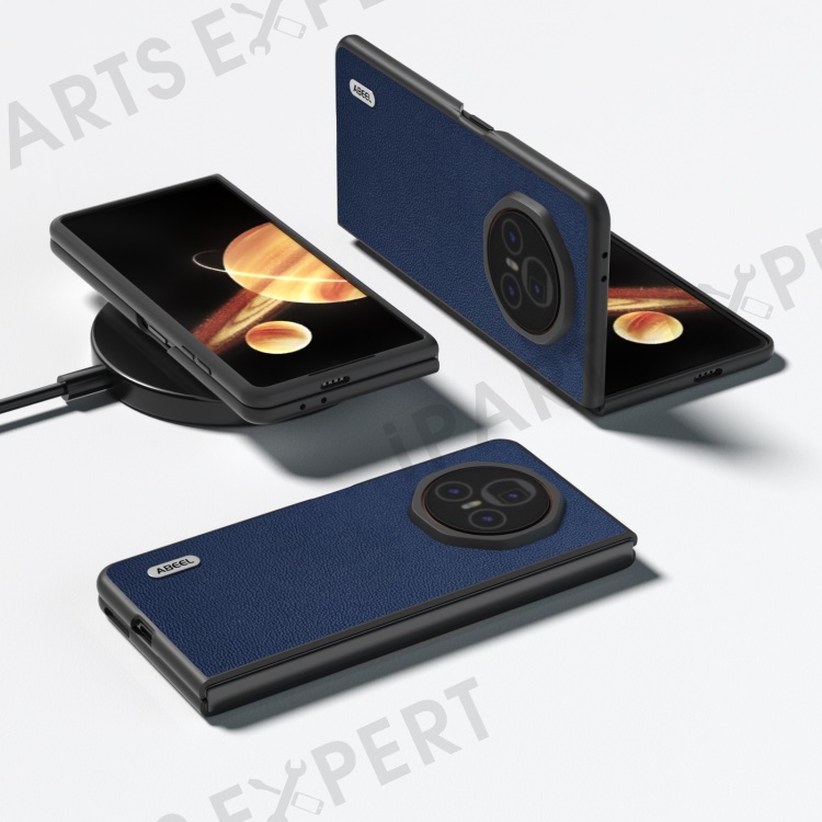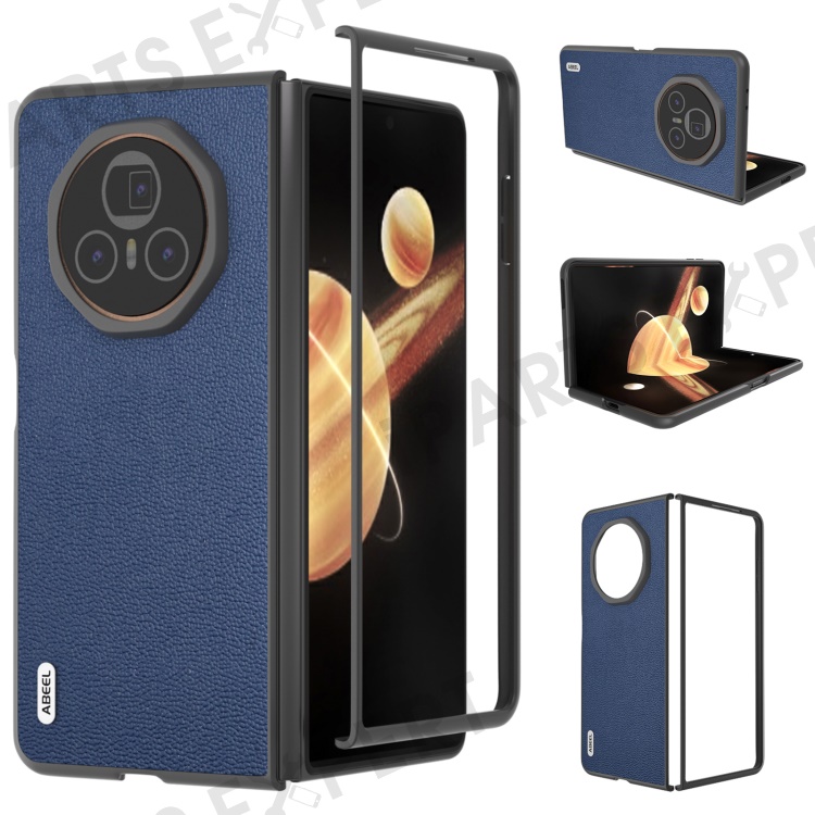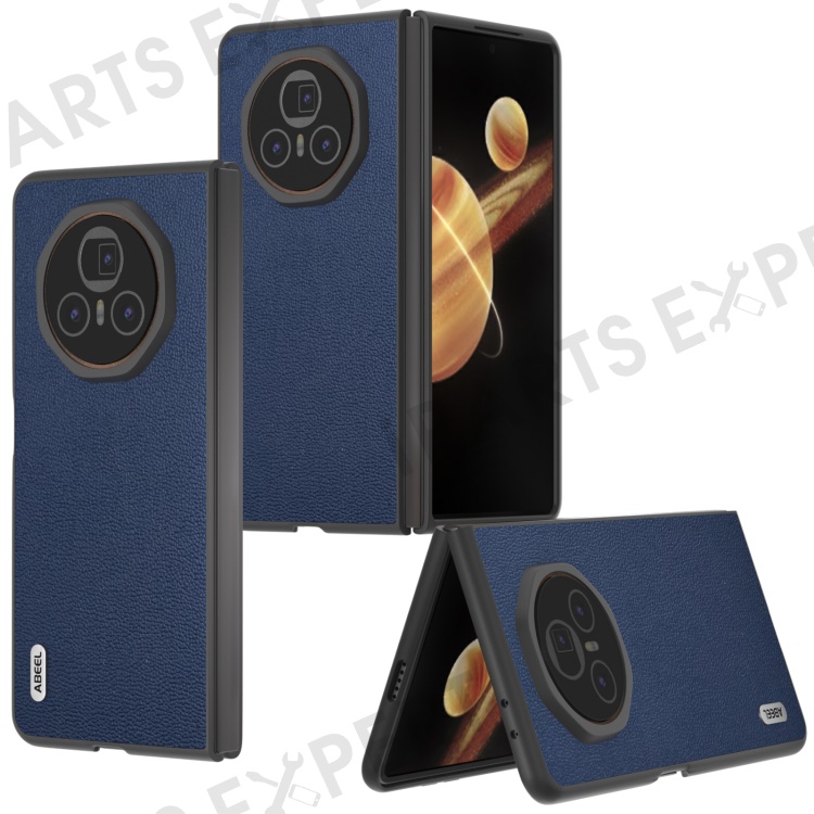 ABEEL For Honor Magic V3 5G Case Genuine Cow Leather Hard PC Folding Phone Cover - Blue