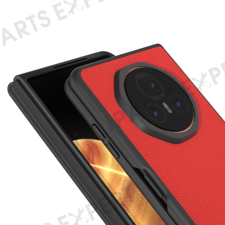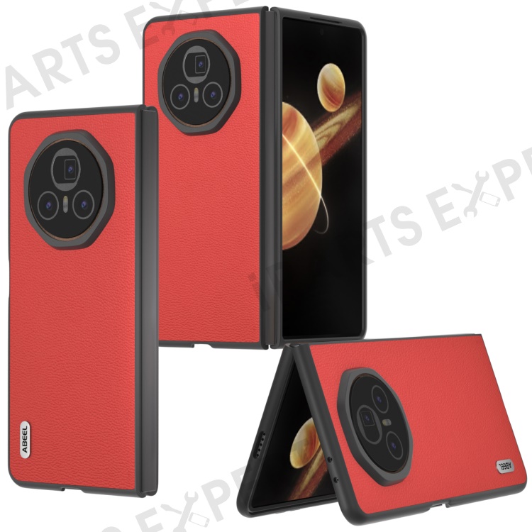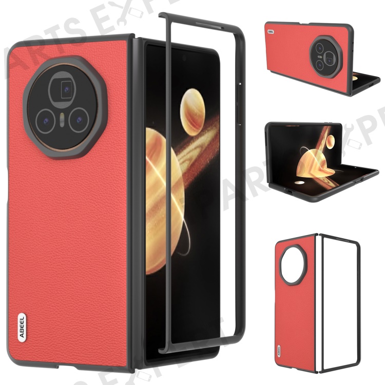 ABEEL For Honor Magic V3 5G Case Genuine Cow Leather Hard PC Folding Phone Cover - Red