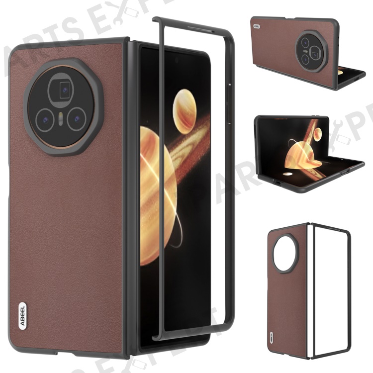ABEEL For Honor Magic V3 5G Case Genuine Cow Leather+PC Phone Cover Black Edge - Coffee