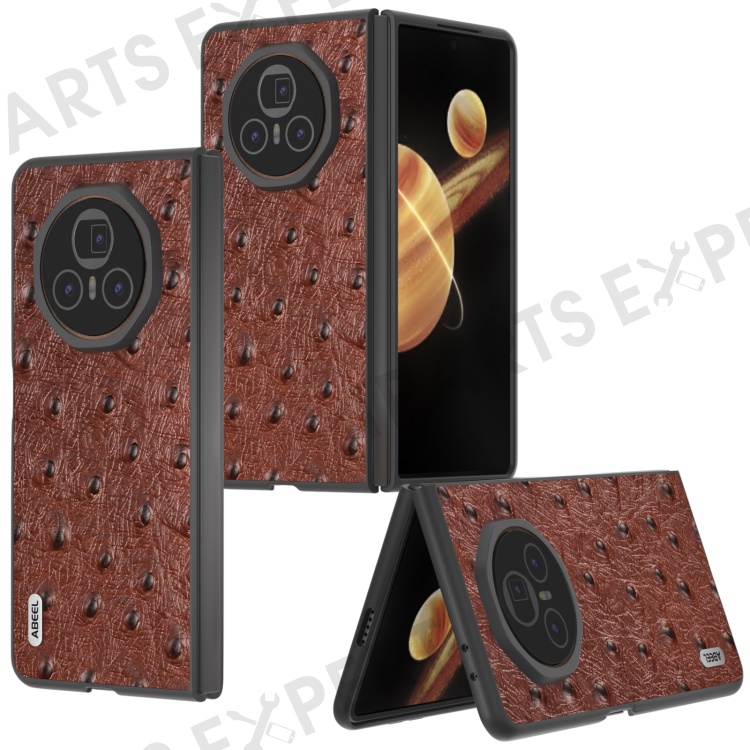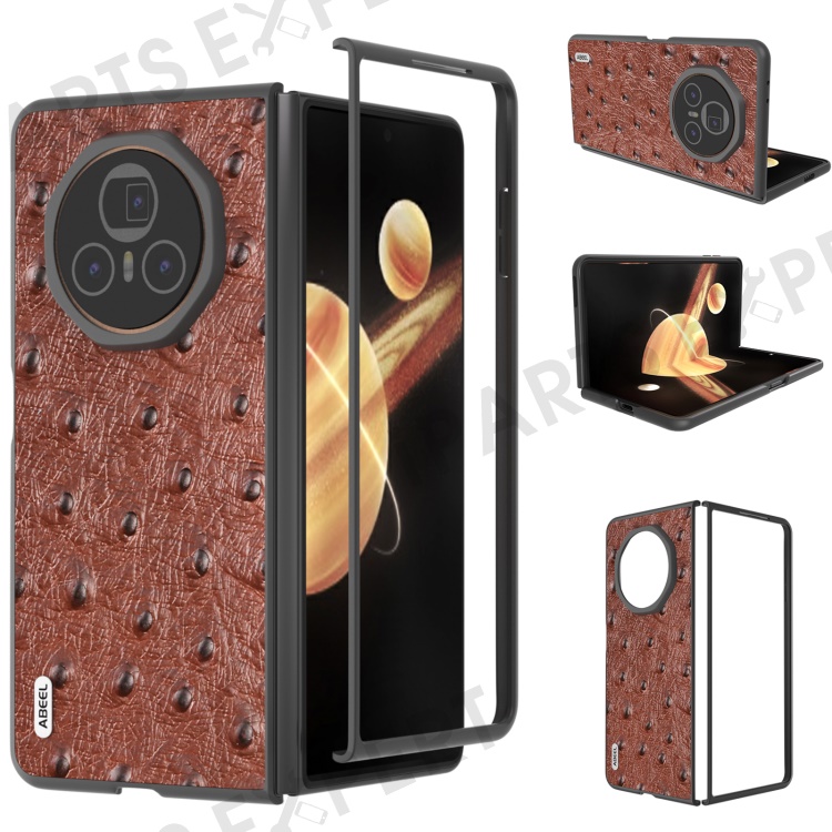 ABEEL For Honor Magic V3 5G Case Ostrich Texture Genuine Cow Leather Hard PC Phone Cover - Coffee