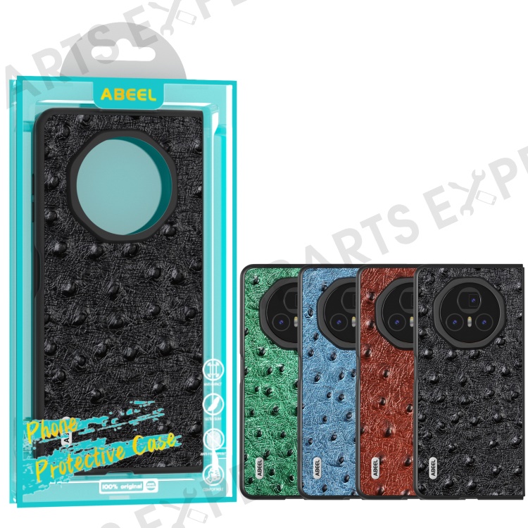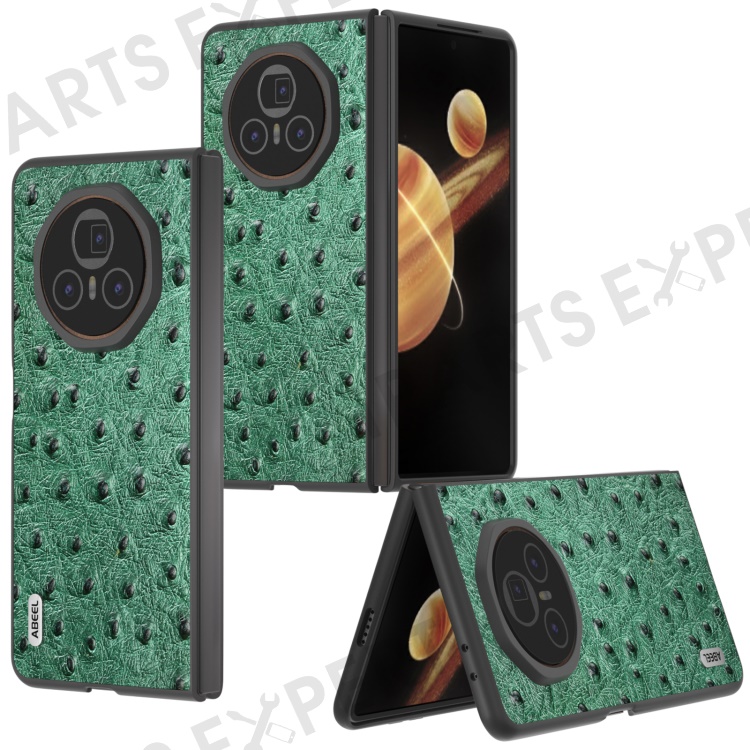 ABEEL For Honor Magic V3 5G Case Ostrich Texture Genuine Cow Leather Hard PC Phone Cover - Green