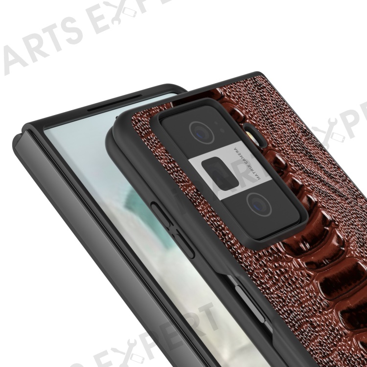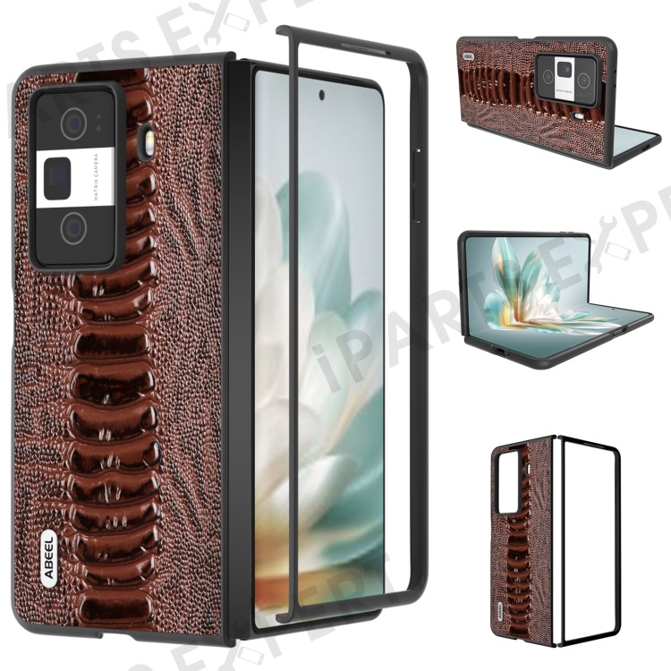 ABEEL For Honor Magic Vs3 5G Case Crocodile Texture Genuine Cow Leather Back Cover - Coffee