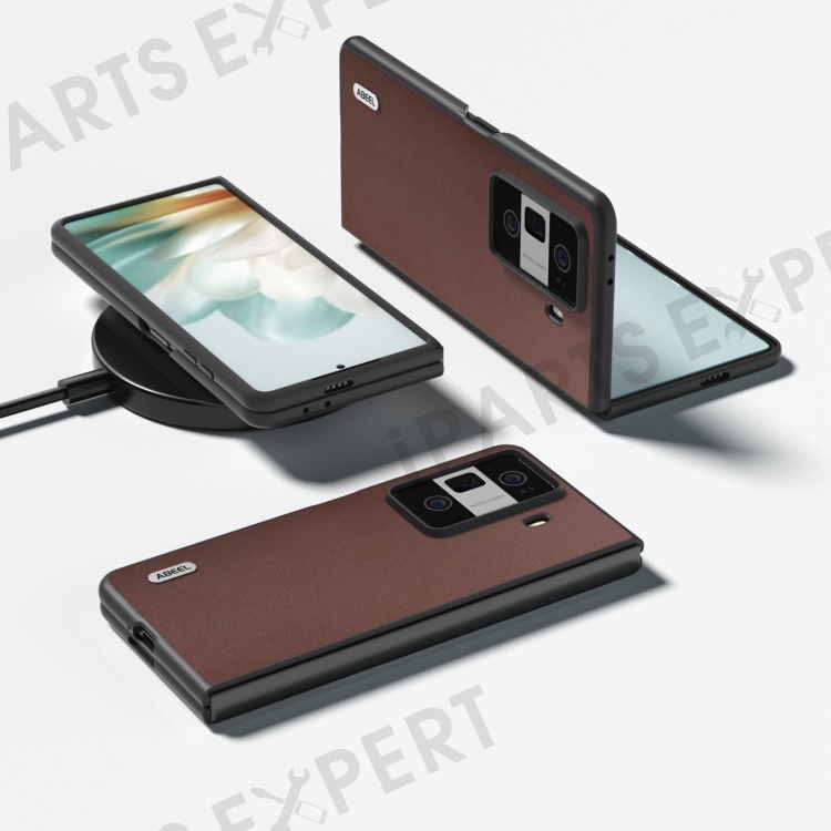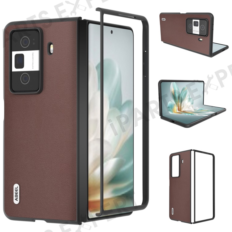 ABEEL For Honor Magic Vs3 5G Case Genuine Cow Leather Coated Hard PC Phone Cover - Coffee