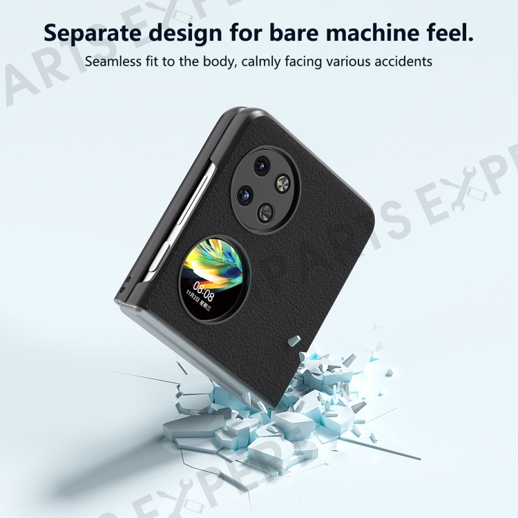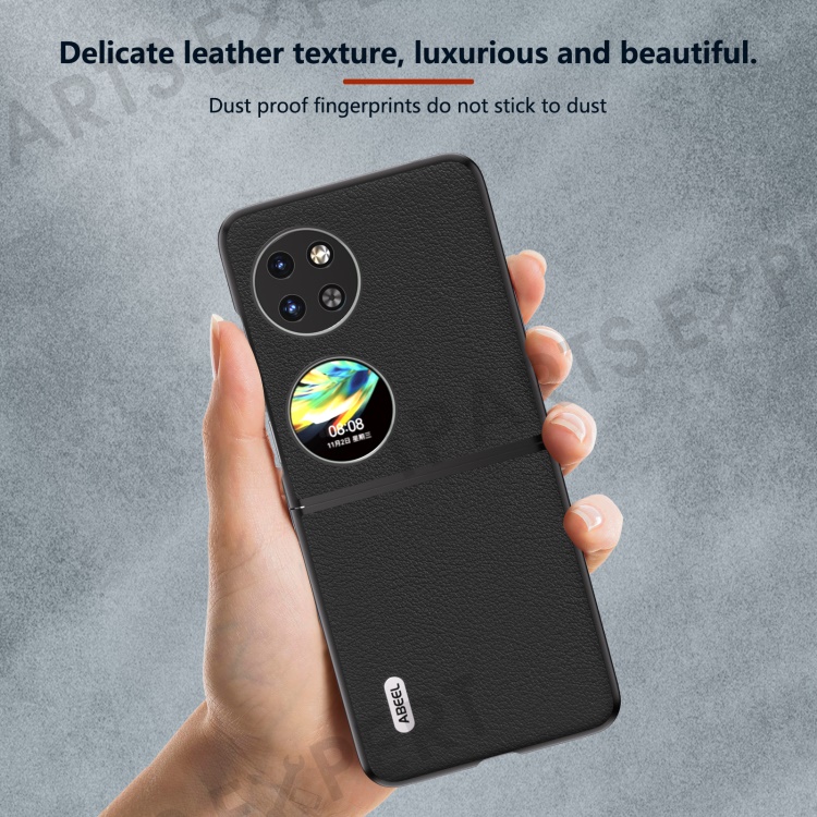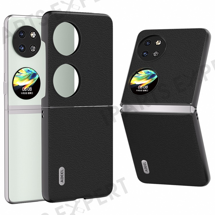 ABEEL For Huawei Pocket 2 Case Genuine Cow Leather+PC Waves Texture Phone Cover - Black