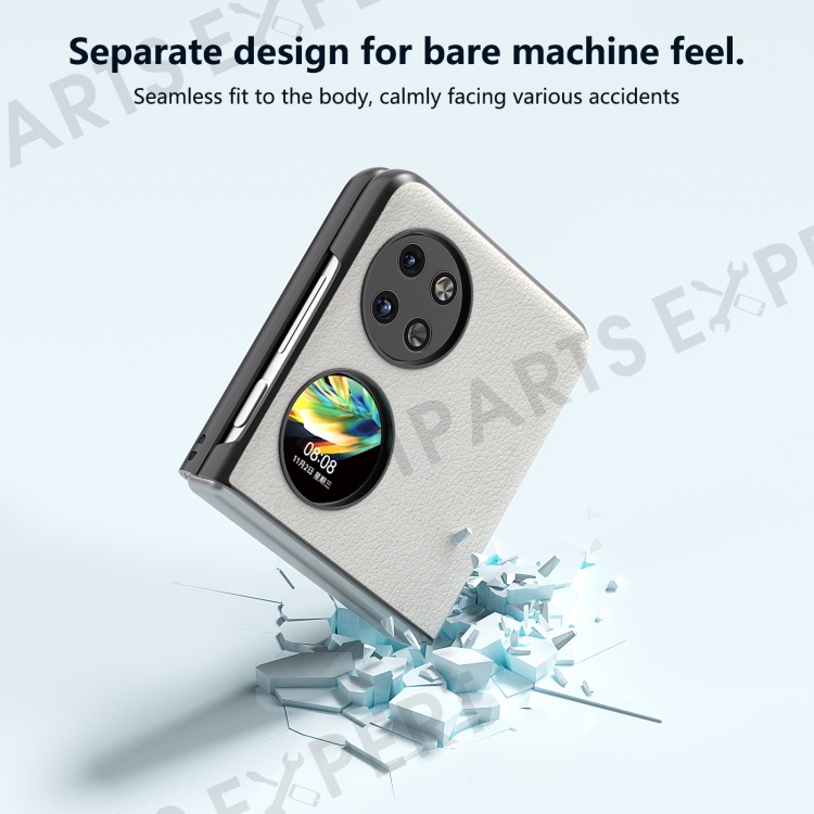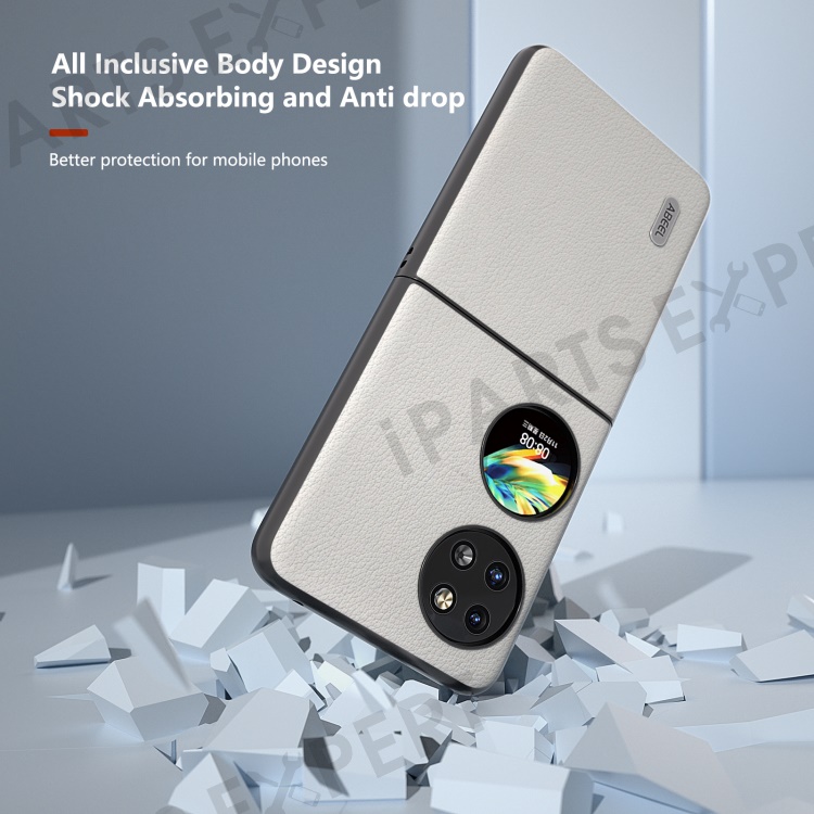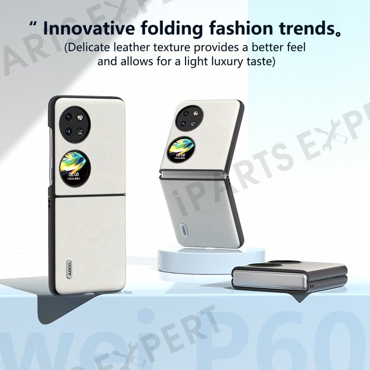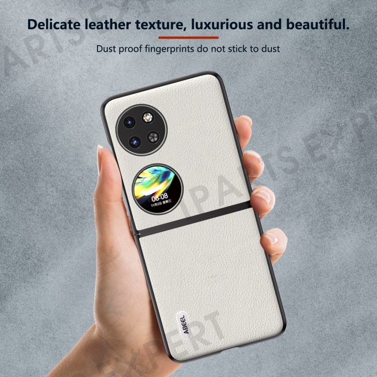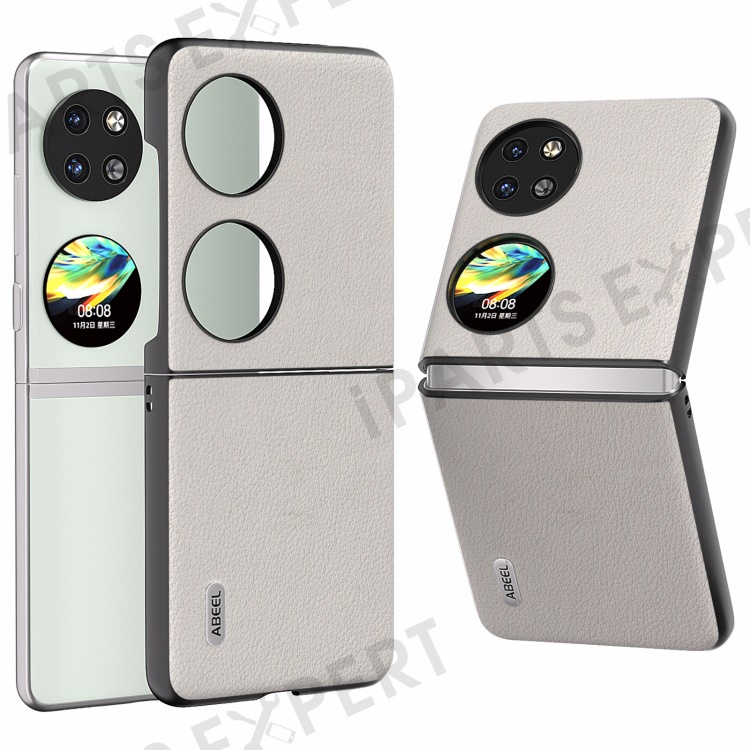 ABEEL For Huawei Pocket 2 Case Genuine Cow Leather+PC Waves Texture Phone Cover - Grey