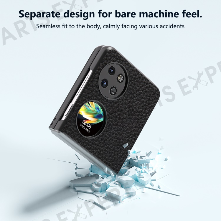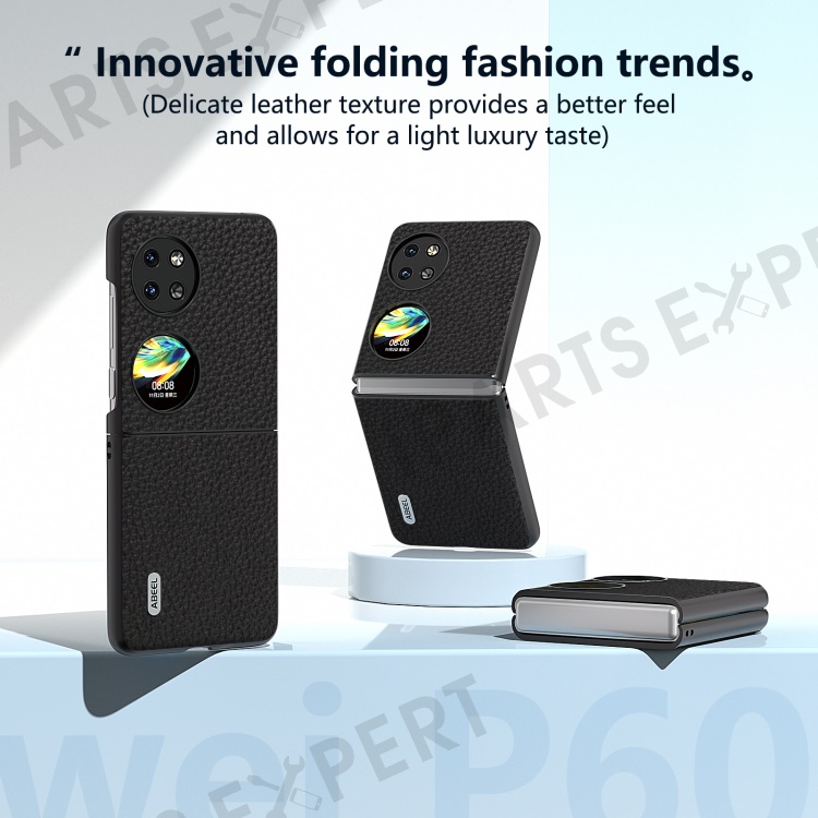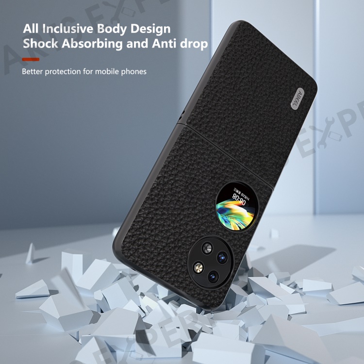 ABEEL For Huawei Pocket 2 Phone Case Genuine Cow Leather with Hard PC Inner Shell Litchi Texture - Black