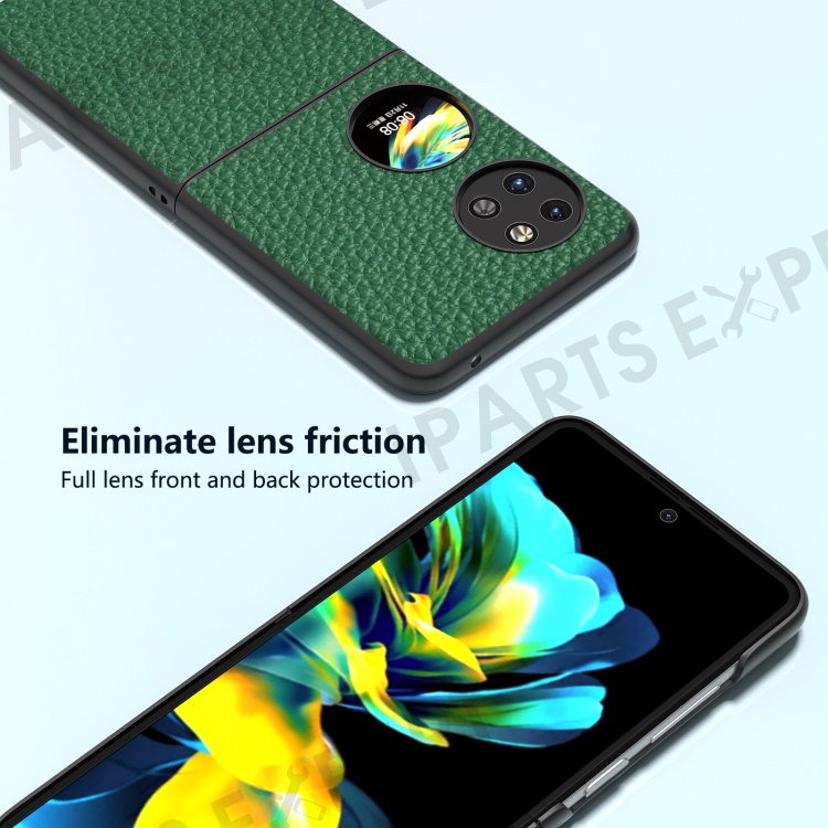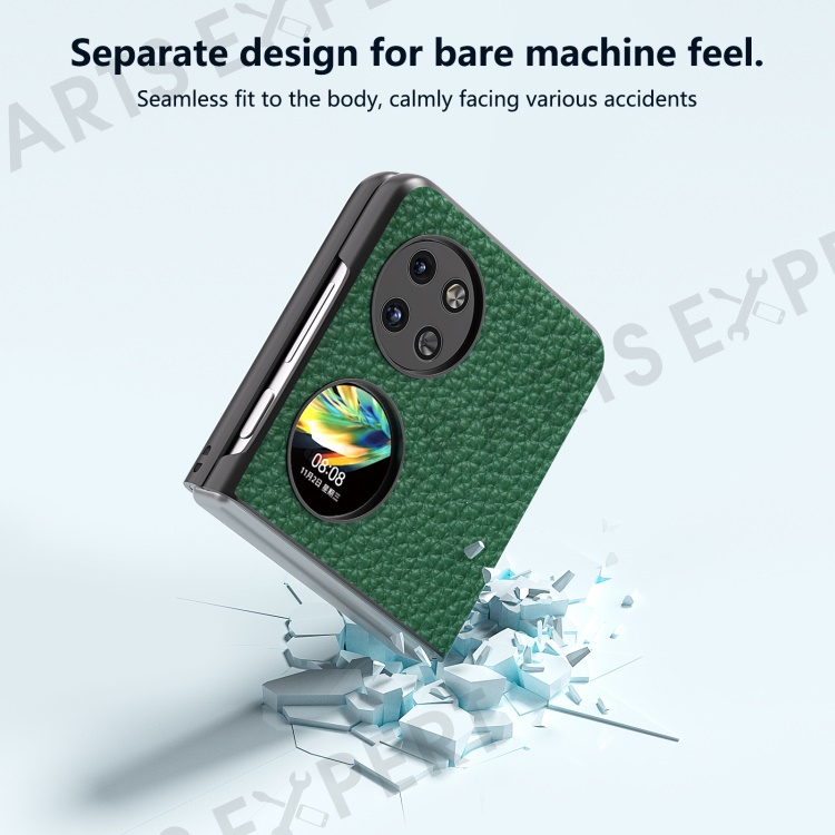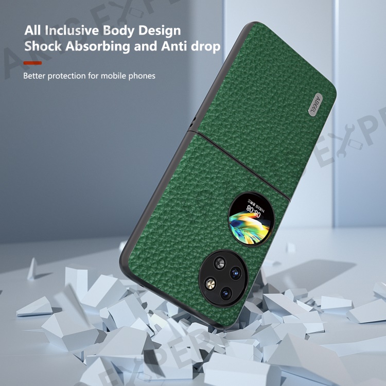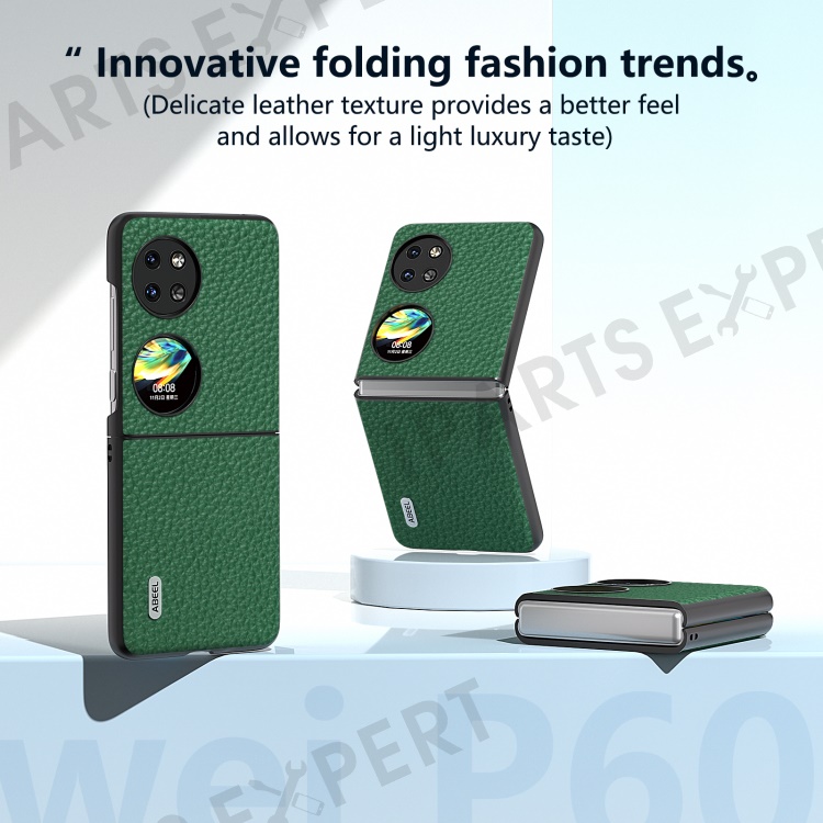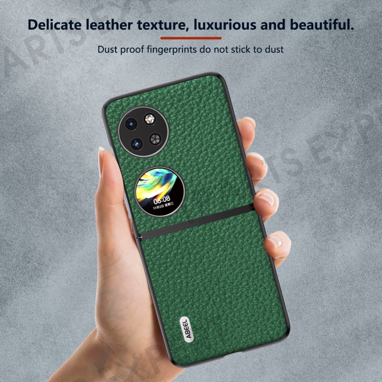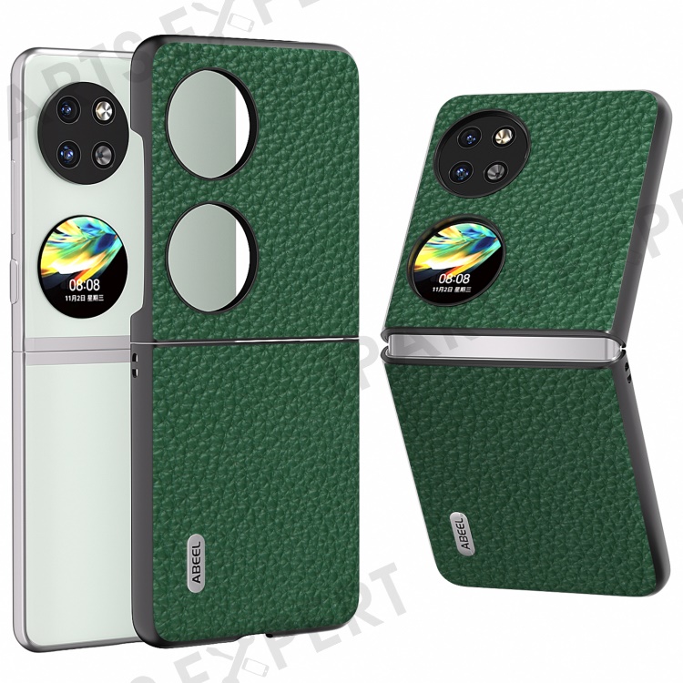 ABEEL For Huawei Pocket 2 Phone Case Genuine Cow Leather with Hard PC Inner Shell Litchi Texture - Green