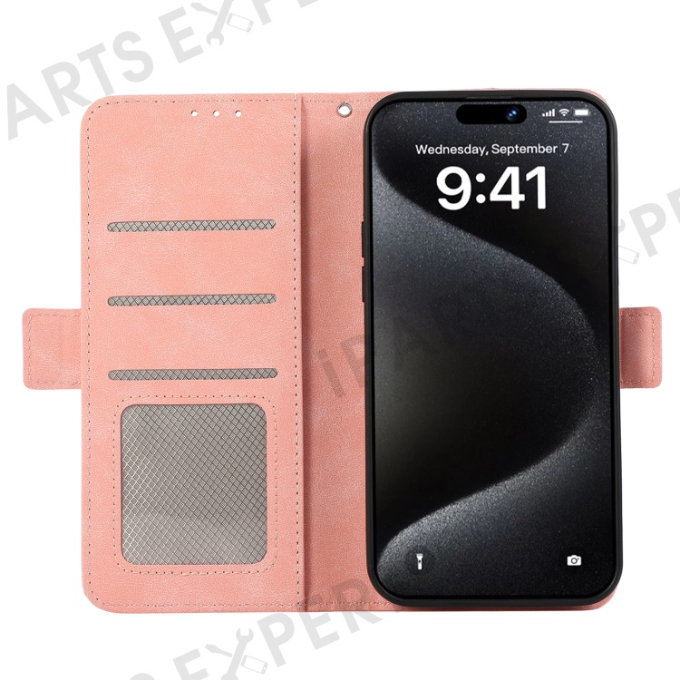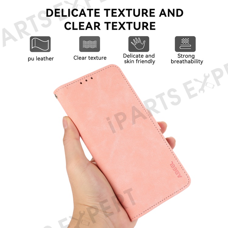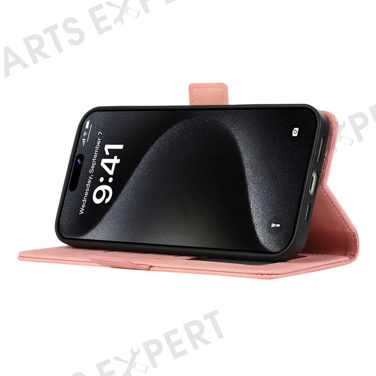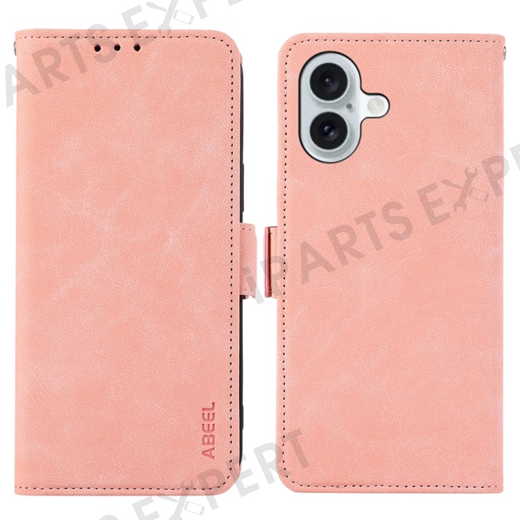 ABEEL For iPhone 16 Leather Case RFID Blocking Card Slots Wallet Phone Cover - Pink