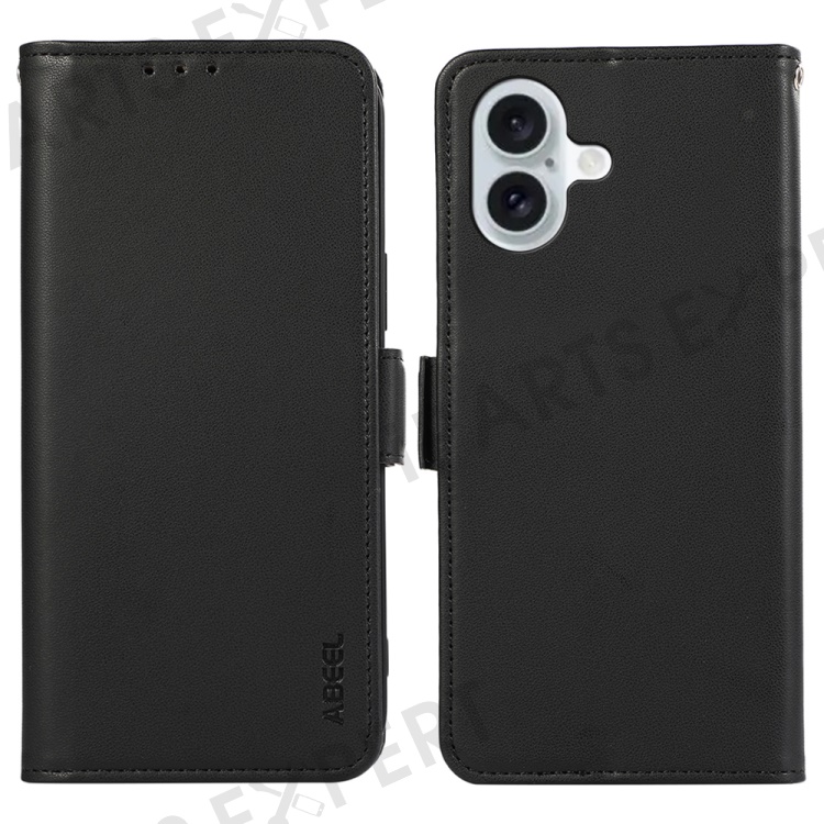 ABEEL For iPhone 16 Plus Case Leather Phone Cover with RFID Blocking Wallet - Black