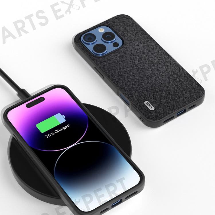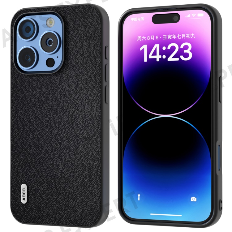 ABEEL For iPhone 16 Pro Case Genuine Cow Leather PC Phone Cover - Black