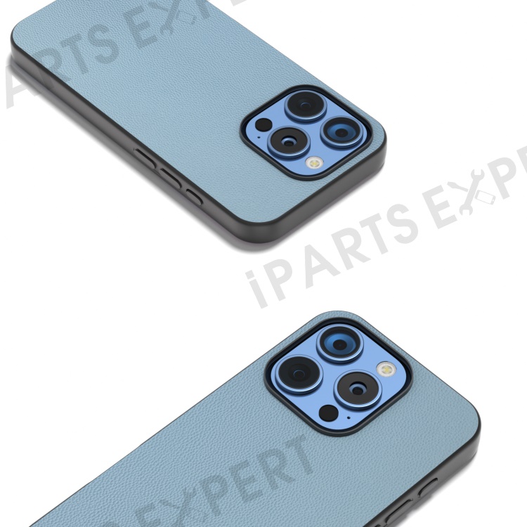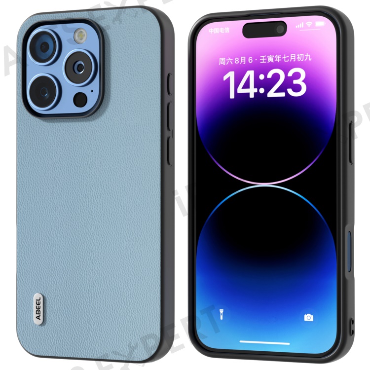 ABEEL For iPhone 16 Pro Case Genuine Cow Leather PC Phone Cover - Sky Blue