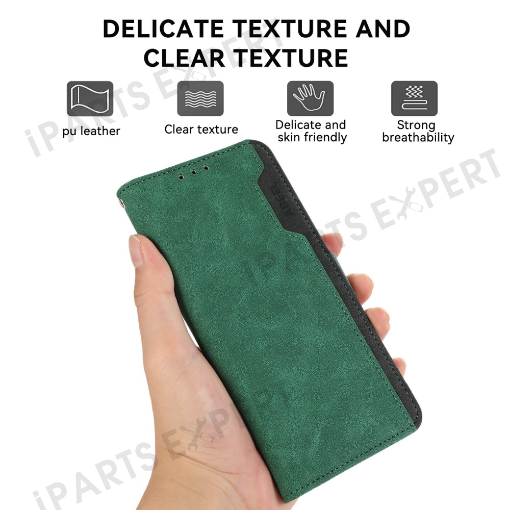 ABEEL For Motorola Moto G15 4G / G05 4G Case Color Splicing Leather Flip Phone Cover RFID Blocking - Green