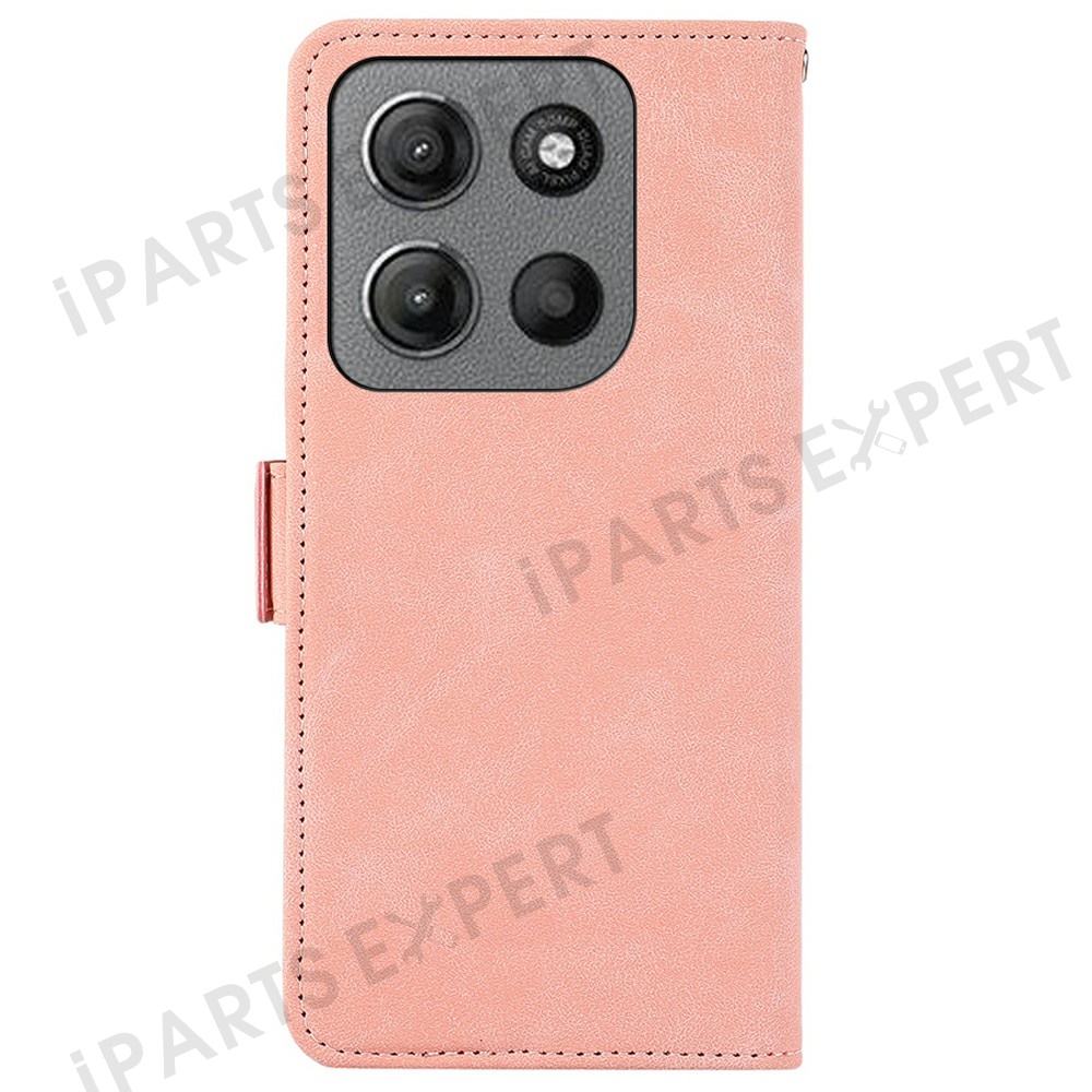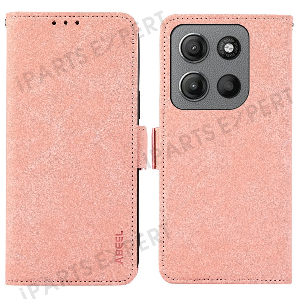 ABEEL For Motorola Moto G15 4G / G05 4G Case PU Leather Folio Stand View RFID Blocking Phone Cover - Pink