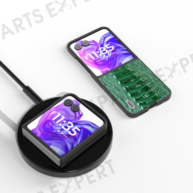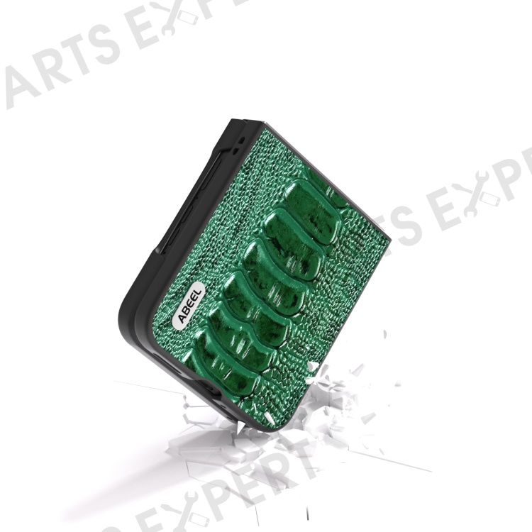 ABEEL For Motorola Razr 50 Ultra 5G Case Genuine Cow Leather+PC Cover Crocodile Texture - Green