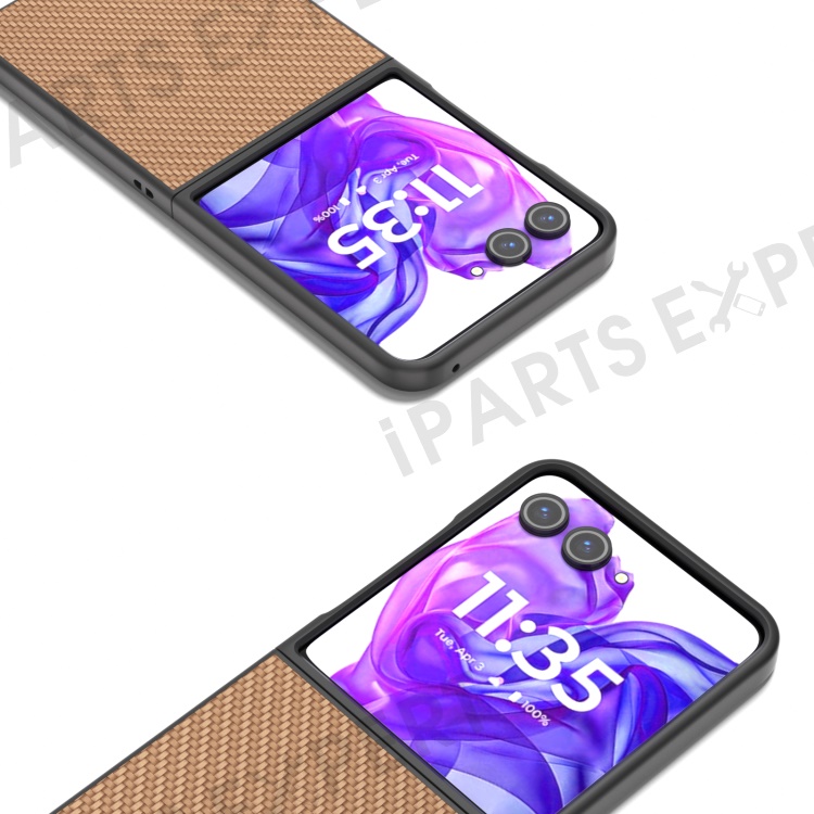 ABEEL For Motorola Razr 50 Ultra 5G Phone Case Carbon Fiber Texture PU+PC Cover - Light Yellow