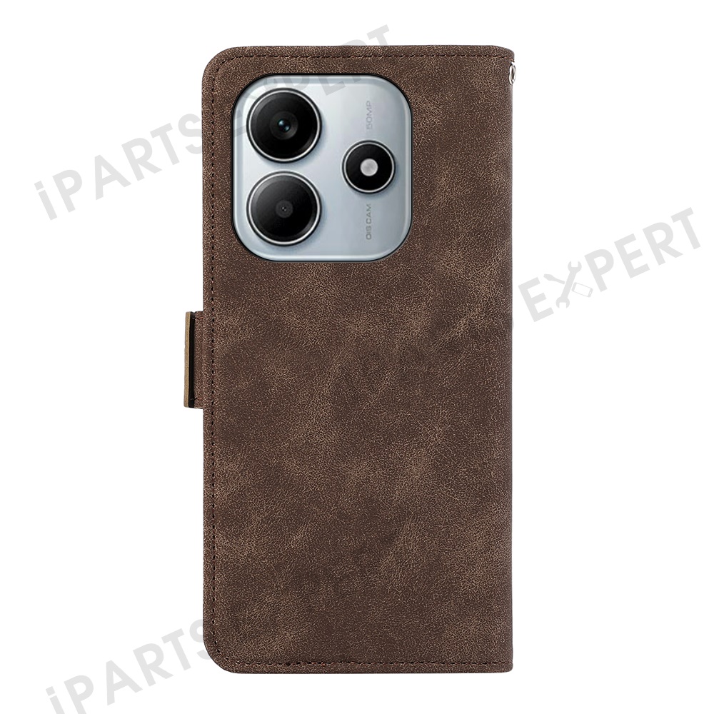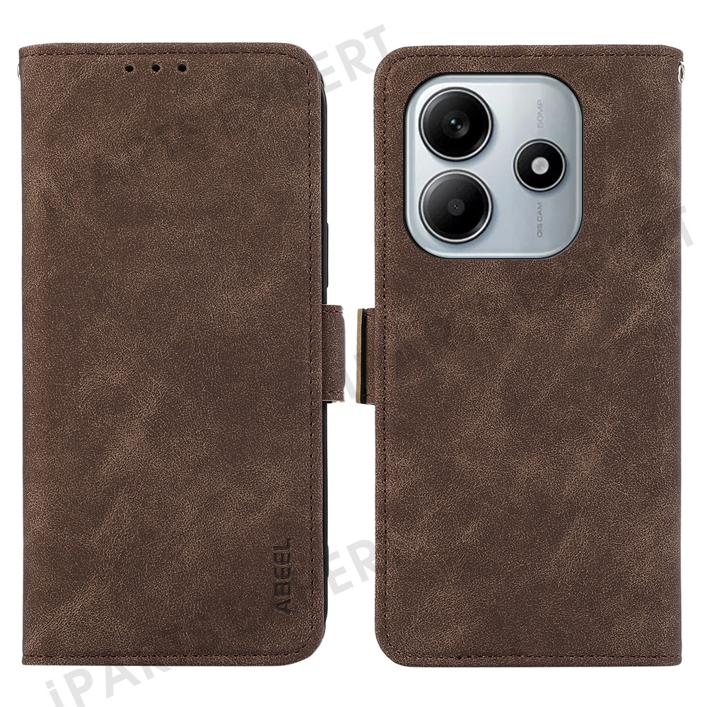 ABEEL For Xiaomi Redmi Note 14 5G Case PU Leather Folio Stand View RFID Blocking Phone Cover - Brown