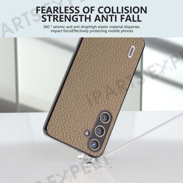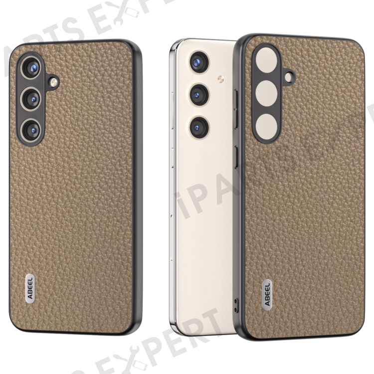 ABEEL Litchi Texture Cover for Samsung Galaxy S24+ Cowhide Leather+PC+TPU Phone Case - Khaki