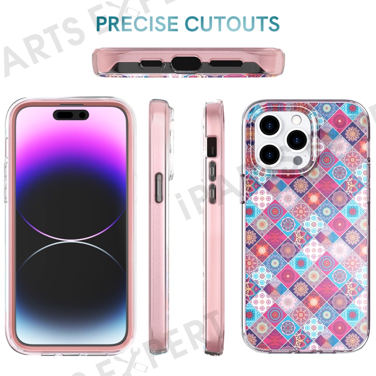 AHASTYLE WE13 For iPhone 14 Pro Max Case Pattern IMD PC+TPU Phone Cover Built-In Screen Protector - Bohemia
