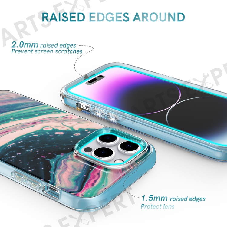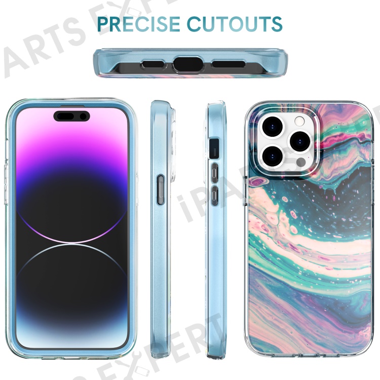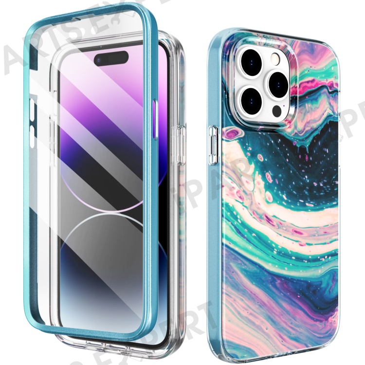 AHASTYLE WE13 For iPhone 14 Pro Max Case Pattern IMD PC+TPU Phone Cover Built-In Screen Protector - Colorful